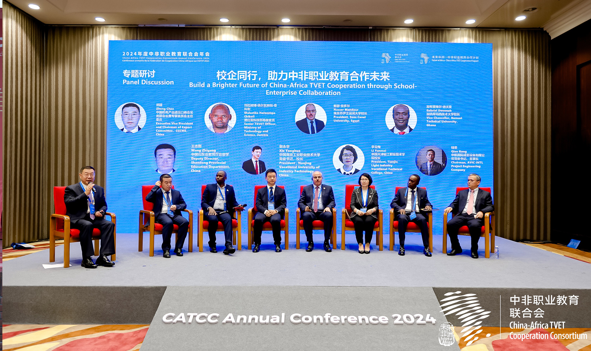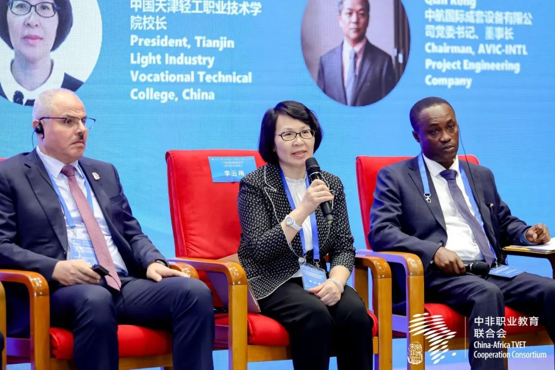 本次年会开展了主旨报告、“校企同行,助力中非职业教育合作未来”专题研讨和中非职业教育联合会工作报告等活动。我院李云梅院长作为中方高职院校唯一代表受邀参加年会的专题研讨环节。该环节由中国机电商会常务副会长兼专家委员会主任委员郑超主持,来自赞比亚、加纳、埃及和我国北京市、天津市、山东省、江苏省的政府官员、大学校长、企业家等7名代表参加了专题研讨。李云梅院长在研讨环节就埃及鲁班工坊的建设与发展作经验分享,阐述了埃及鲁班工坊的建设背景、建设成效、建设影响和未来展望,受到了中非领导和专家们的一致好评。会后,多位中非院校领导、专家与李院长深入交流,希望在中非职业教育合作上可以借鉴轻工经验。李院长表示,新利18平台愿同兄弟院校积极作为,把埃及鲁班工坊打造成中非职业教育合作的标杆,持续拓展中非职教合作的“朋友圈”,为非洲职业教育发展提供中国方案。赞比亚科技部高级官员Malambo Nalwampa Chikoli先生也受邀参加此次研讨,主要就赞比亚在职业教育领域内的市场需求与未来合作的着力点发表见解。