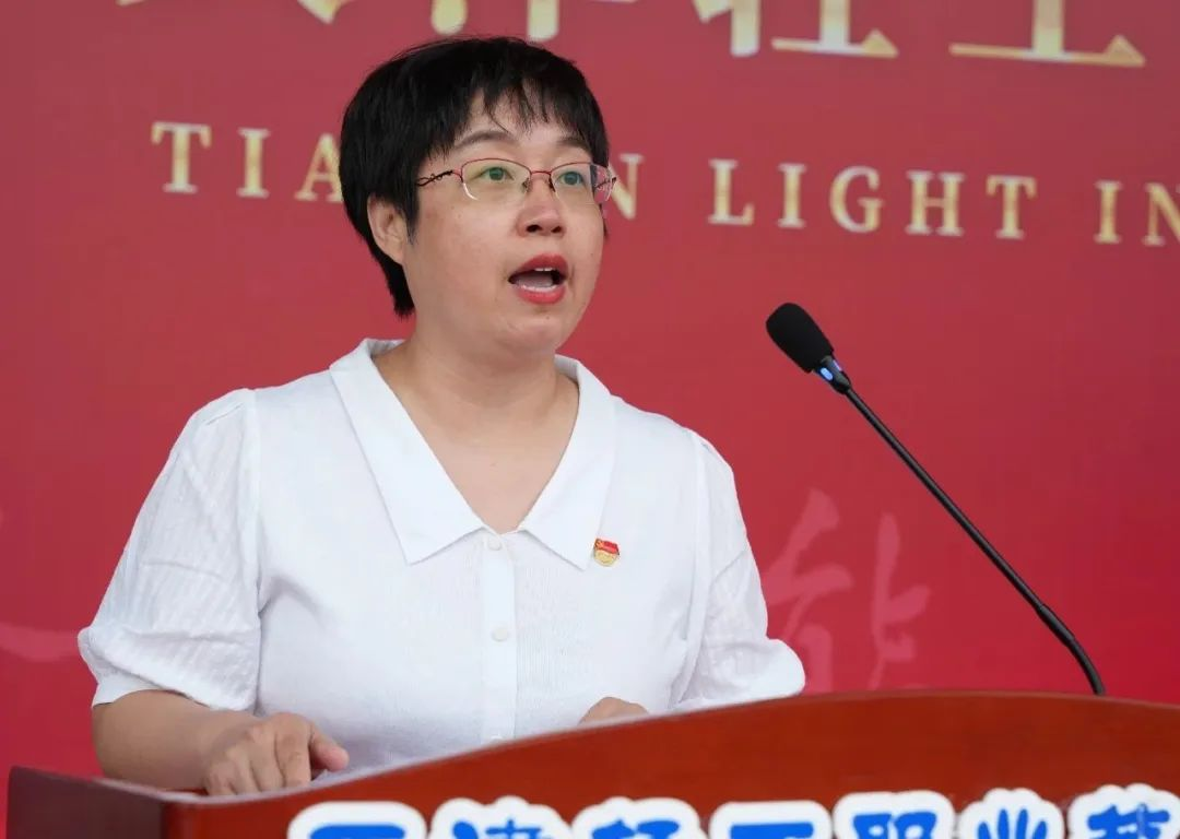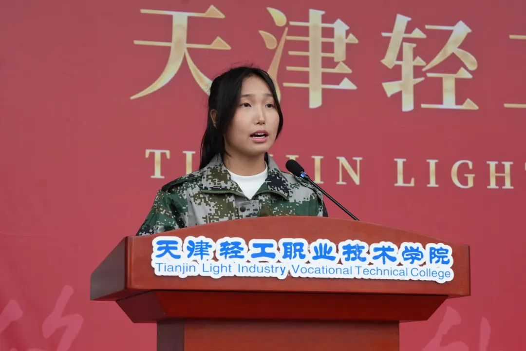 最后,学院院长李云梅向2024级新生讲授“开学第一课”并宣布开训。李云梅院长代表全体班子成员和全校教职员工向2024级新生的到来表示热烈的欢迎,向承担本次军训任务的教官们致以衷心的感谢,并向全体跟训教师和为军训提供保障的教职员工致以诚挚的问候。她向同学们介绍了学校的发展历程、现有的发展成就和未来的发展规划,鼓励同学们投入到学校4.0版本蓝图的建设中。同学们从今天起,会烙上“轻工人”的印记,并在这里打牢知识基础、精进技艺技能、积蓄前进力量;在这里厚植文化底蕴、精湛一技之长、锻造工匠精神!