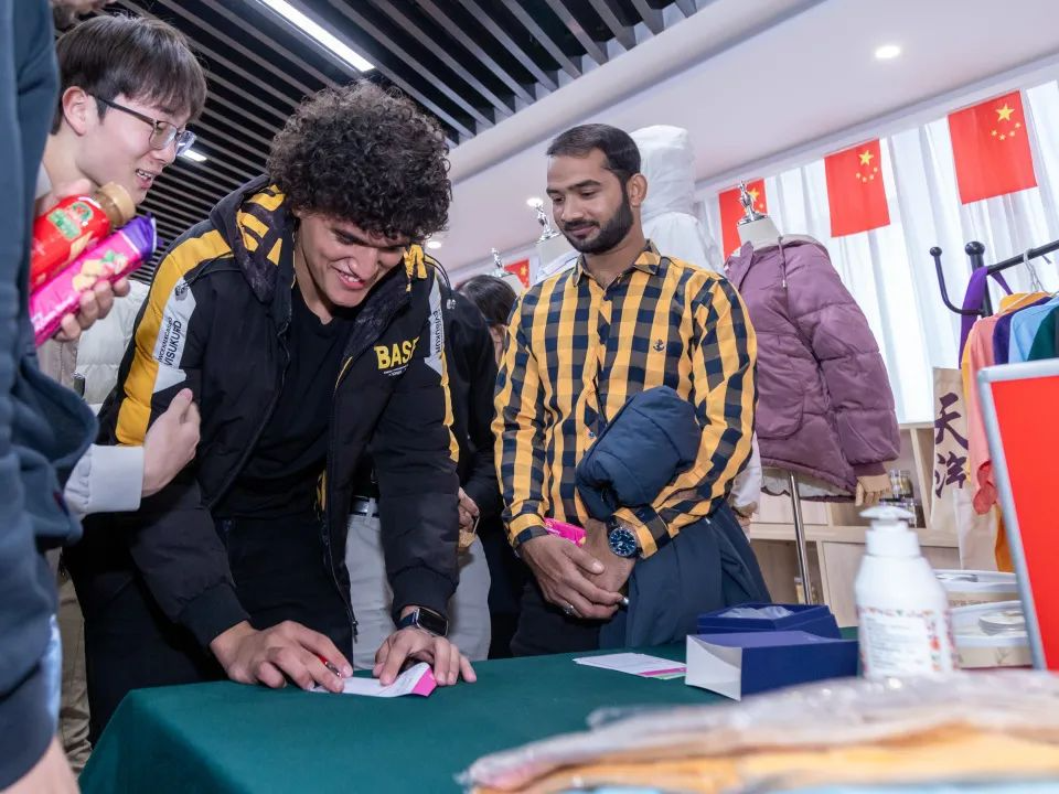 汽车学院还向来访的领导、老师及留学生介绍了相关农牧产品。马上进入入冬时节,天津滨海汽车工程职业学院领导干部们考虑到了留学生们的穿衣问题,特意给他们准备了贴心衣物。