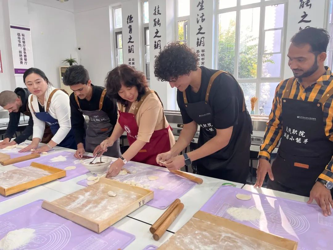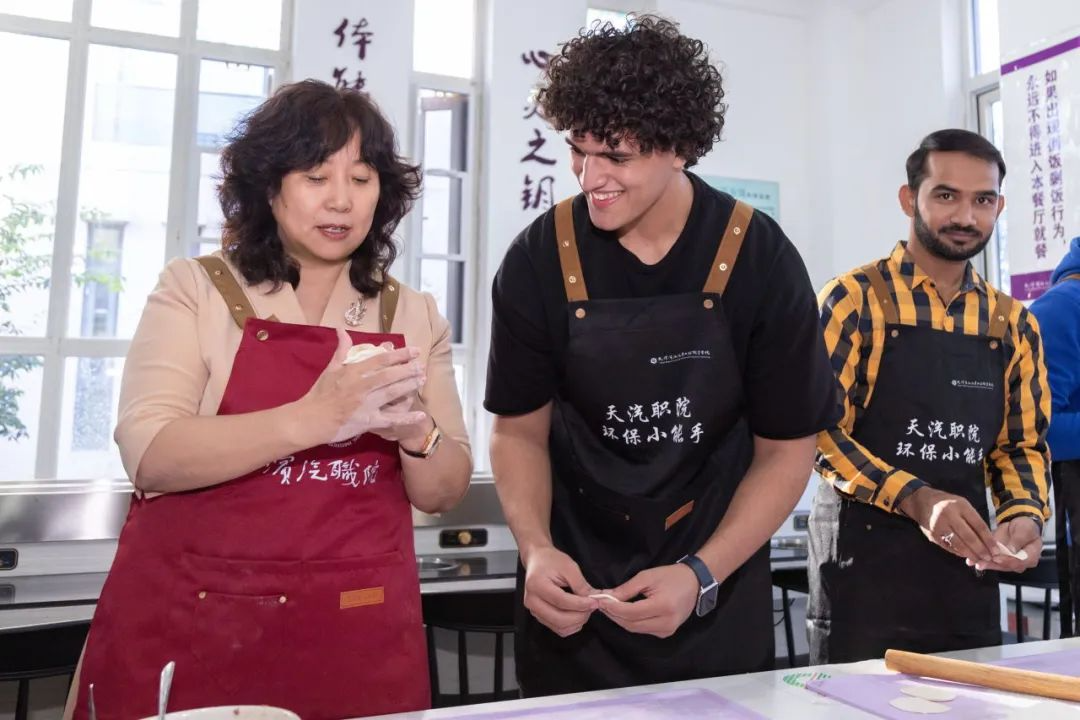 行程的最后,天津滨海汽车工程职业学院的领导们还特意准备了包饺子的环节,我院留学生小明慢慢掌握了包饺子的技巧,他小心翼翼地擀皮、调馅、捏合,虽然动作有些生疏,但都充满了对中国传统文化的尊重和热爱。