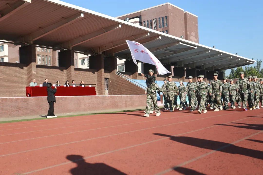 在升旗仪式后,各二级学院代表连队迈着整齐的步伐,喊着响亮的口号,依次走过主席台。他们精神抖擞,步伐坚定,展现出了新时代青年的蓬勃朝气和顽强斗志。队列动作整齐划一,军体拳虎虎生威,充分展示了同学们在军训期间的丰硕成果。
