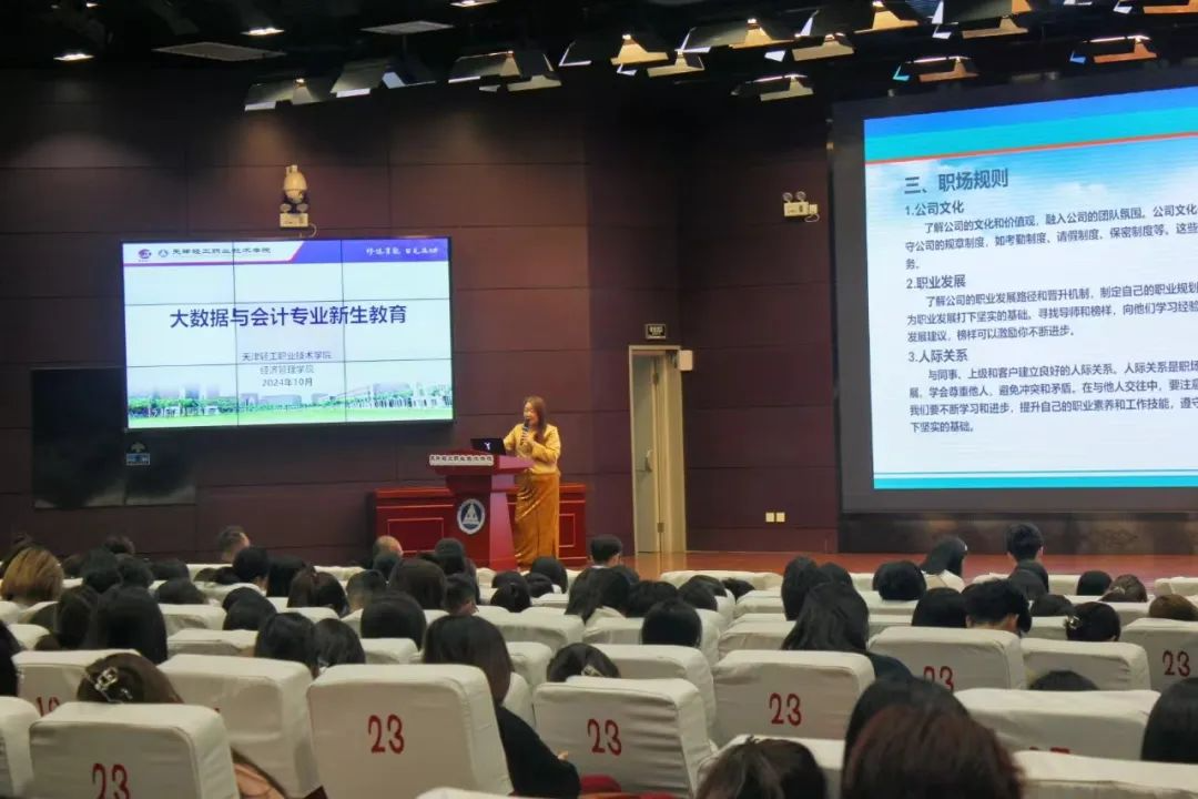 宏捷算科技(天津)有限公司人力资源部经理艾凌带来了一场精彩纷呈的职业发展与就业指导报告。她紧密结合企业实际需求,深入剖析了大数据与会计专业的发展趋势及就业前景,为新生们提供了极具价值的职业规划建议,犹如一盏明灯,照亮了他们的前行之路。