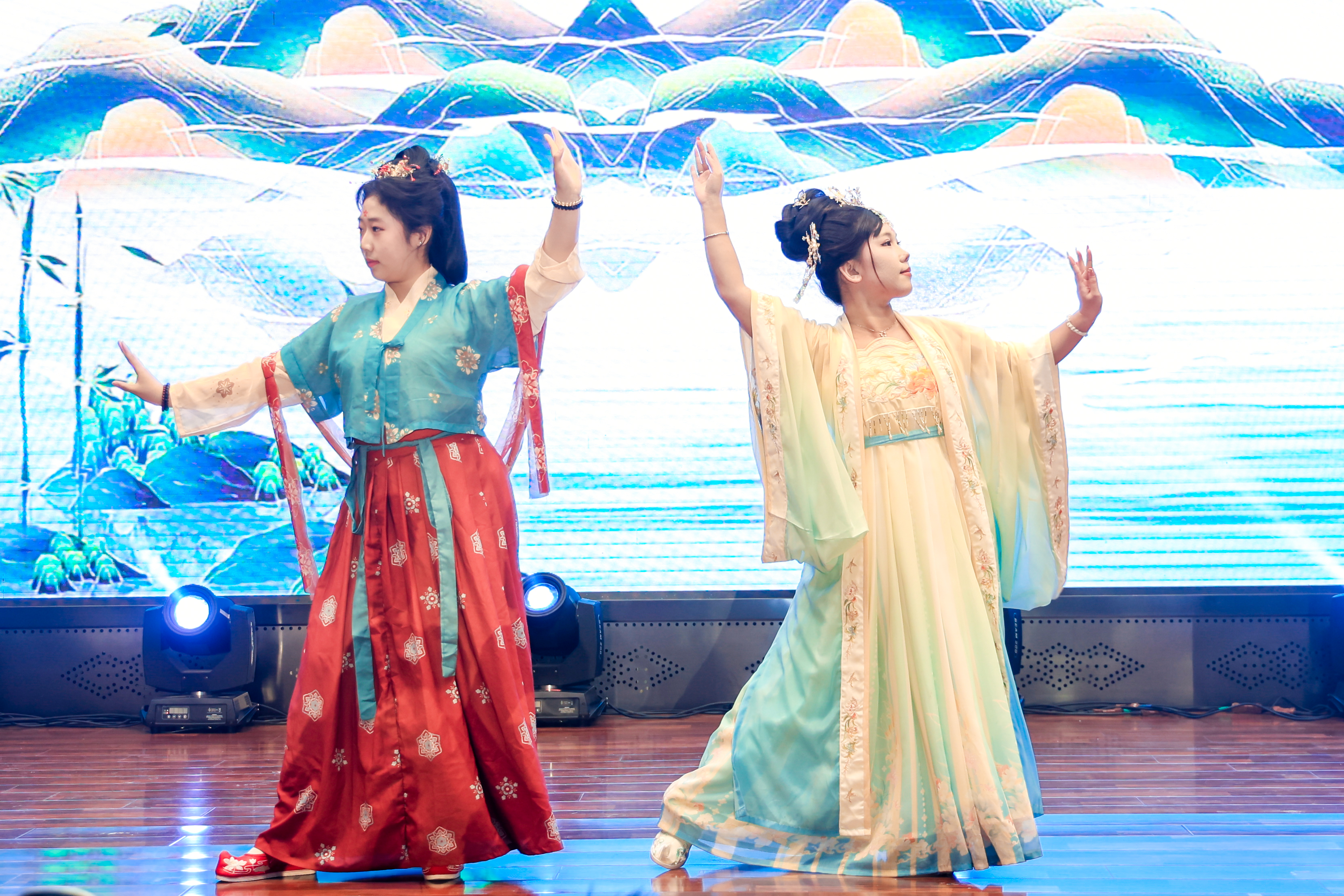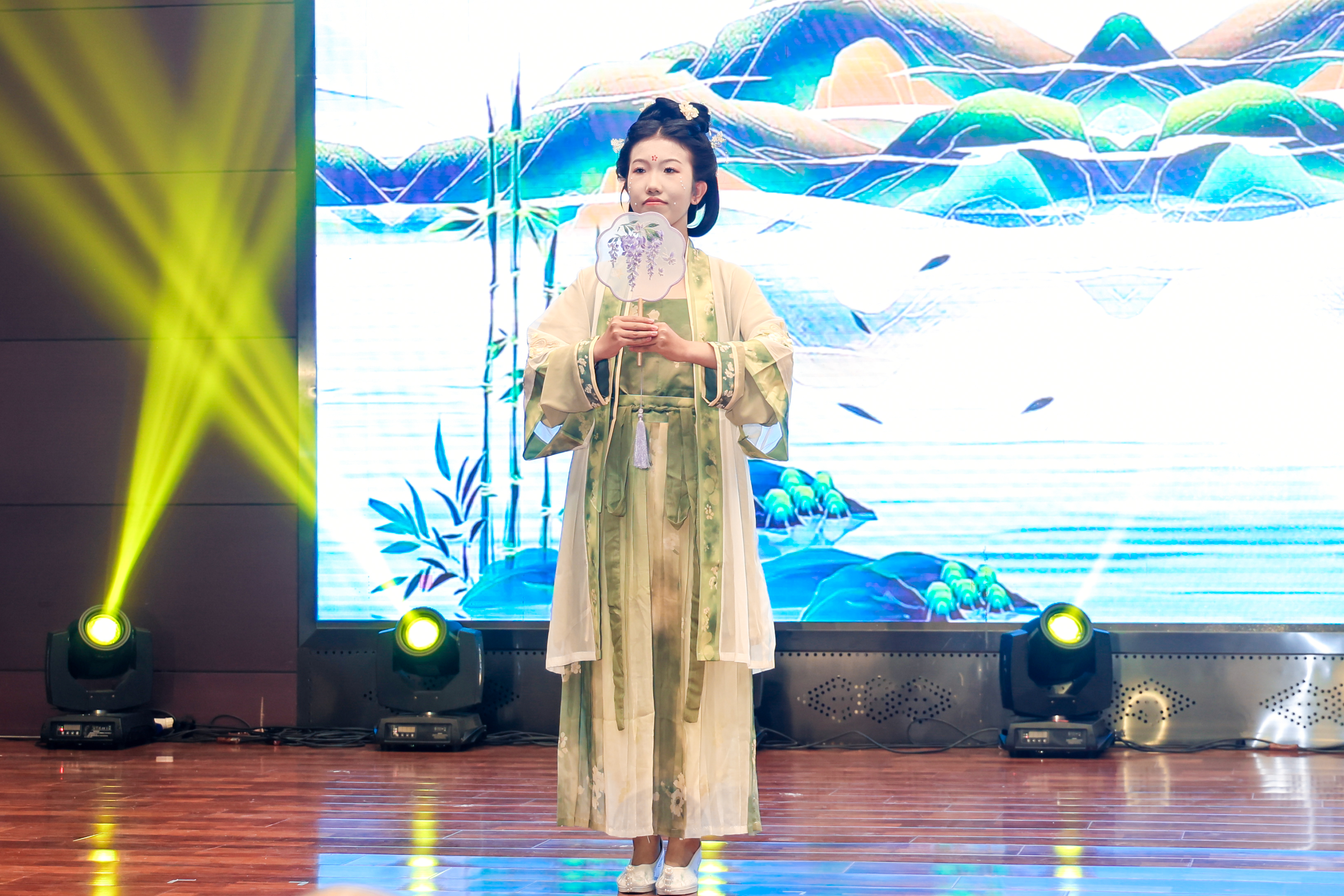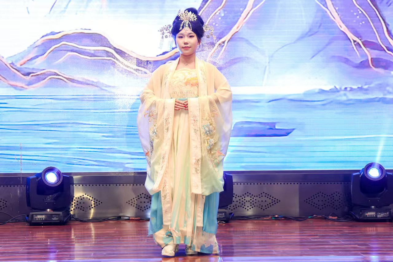 《华裳雅韵 汉服新章》汉服走秀,轻工学院服装设计与工艺专业师生与鲁班工坊外国留学生们共同携手,从秦汉时期的古朴庄重到隋唐的灿烂华丽,再到明清时期的民族融合,各种款式的汉服在舞台上争奇斗艳,仿佛一幅流动的古代画卷,将中华文化的深厚内涵得以呈现。