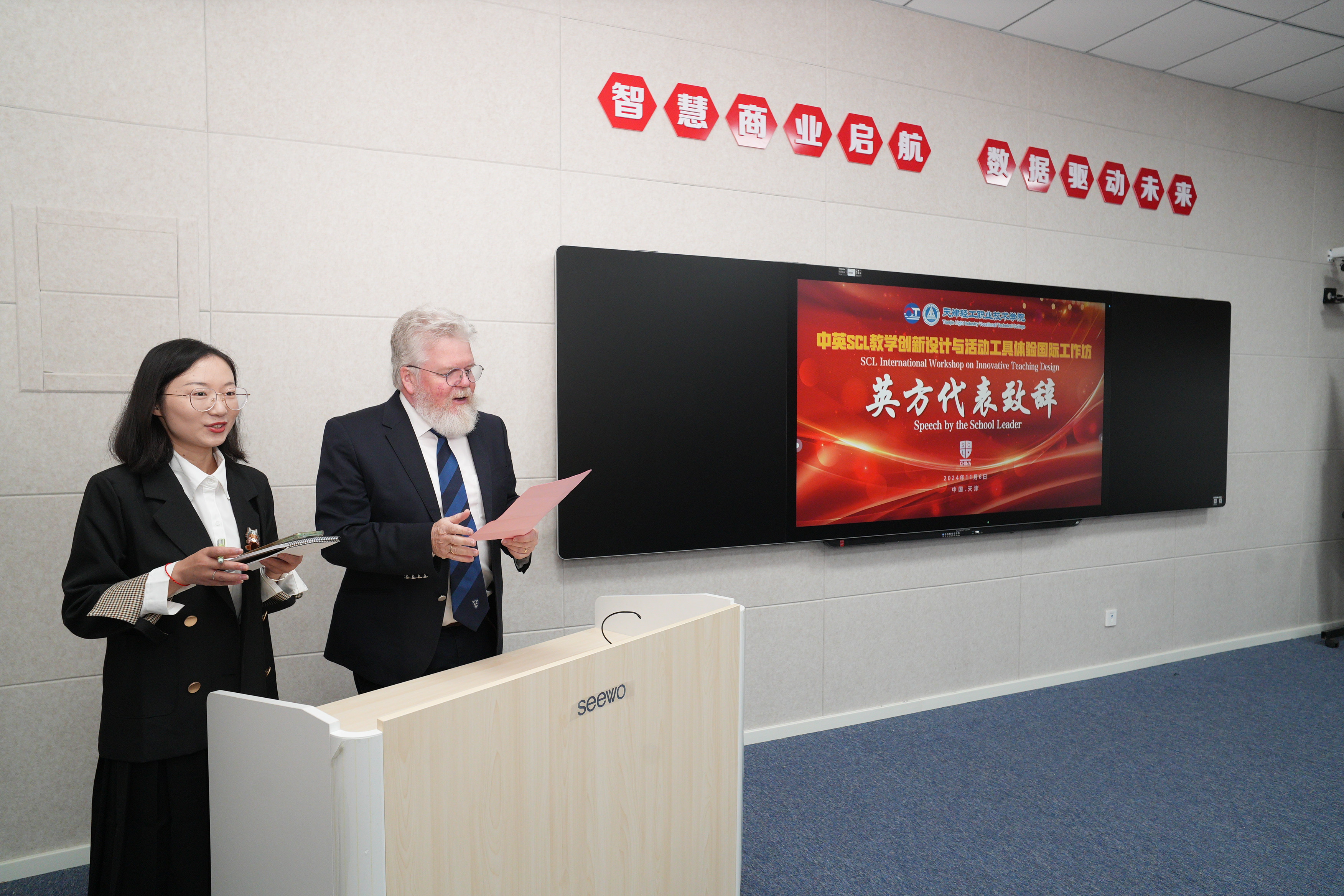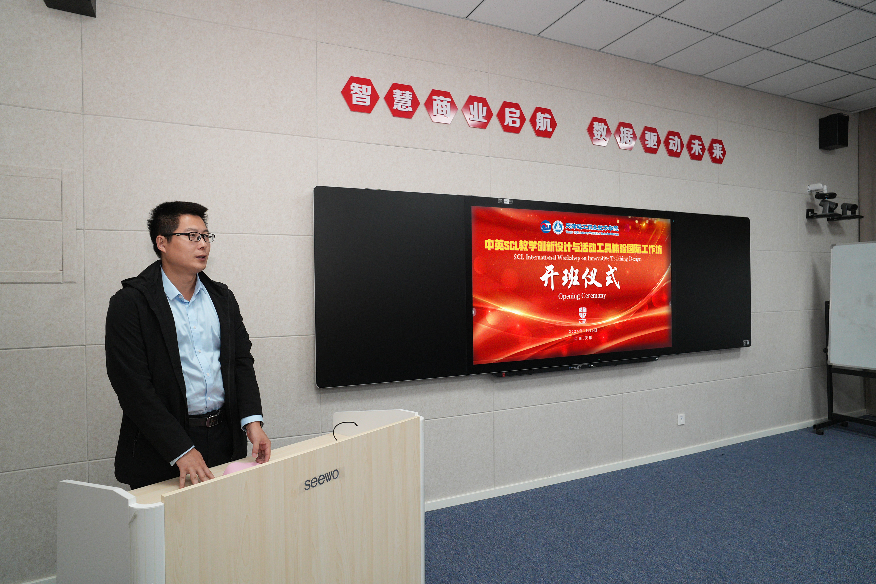 为深入贯彻落实习近平总书记关于教育的重要论述和全国职业教育大会精神,进一步提升学院教师教育教学创新能力,培养一批具有先进职业教育教学理念、教学方法的“双师型”师资团队,落实立德树人根本任务,推动“金师资”建设高质量发展,我院联合AQCET英国教育与教学质量控制协会于11月6日上午举行了中英SCL教学创新设计与学生活动工具体验国际工作坊首期开班仪式。