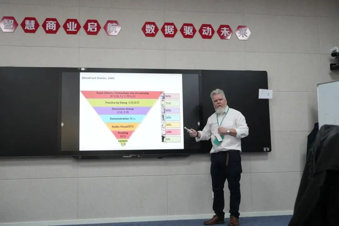 培训过程中,罗德•罗伯逊教授带来了丰富多彩的多元教学方法,为学院教师开启了创新教学的大门。理论教学法让教师们深刻地理解了马斯洛需要层次理论、皮亚杰认知发展理论、布鲁纳螺旋式课程等理论概念,为教育教学提供了坚实的理论基础;情景模拟法让教师们身临其境地体验课堂教学,为以后更精准地调节教学策略提供了宝贵的实践经验。案例分析法让教师们根据自身所教专业深入剖析潜在的SCL教育理念,体会理念在实践中的巧妙应用,进而更好地内化吸收。