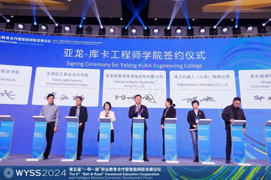 会议期间,院长李云梅发表了题为《埃及鲁班工坊-打造中非职业教育合作标杆》的专题报告,深入介绍了我校与埃及合作共建鲁班工坊的成功案例。该项目不仅促进了中非职业教育的合作交流,也为中国职业教育国际化提供了宝贵的经验。此外,李云梅院长还与亚龙公司签署了产教融合共建工程师学院项目的合作协议,旨在通过校企深度合作,提升学生的实践能力和创新能力,满足社会对高素质技术技能人才的需求。