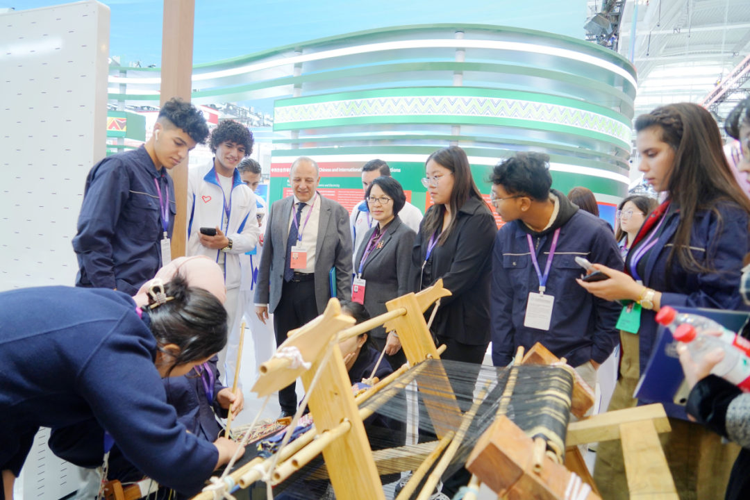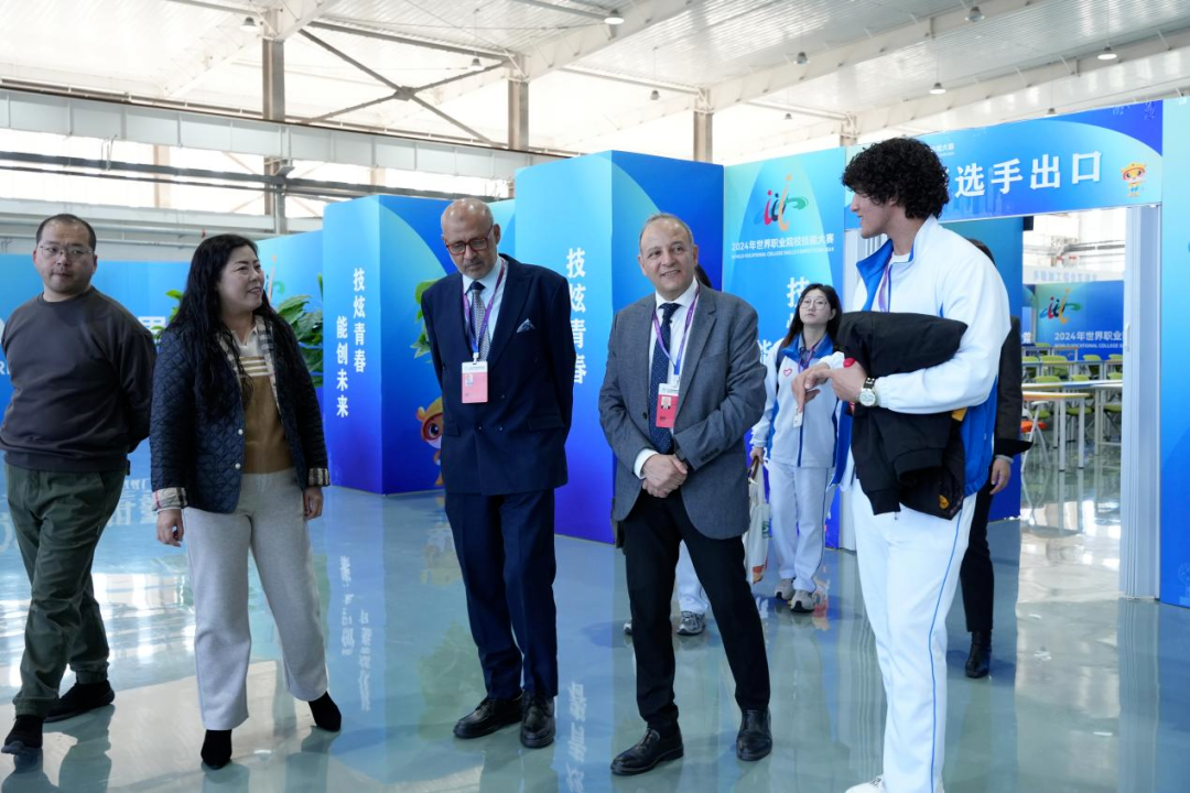 大会闭幕式后,艾哈迈德·艾尔萨巴赫副院长、哈立德·雷伊德·塔维基·哈桑宁校长与我校埃及留学生一同参观了2024年世界职教大会专题展。鲁班工坊作为中国职业教育的国际品牌,展示了中国在职业教育领域的创新成果和先进技术。代表团对鲁班工坊的展览内容表示高度赞赏,认为这充分体现了中国职业教育的活力与实力。