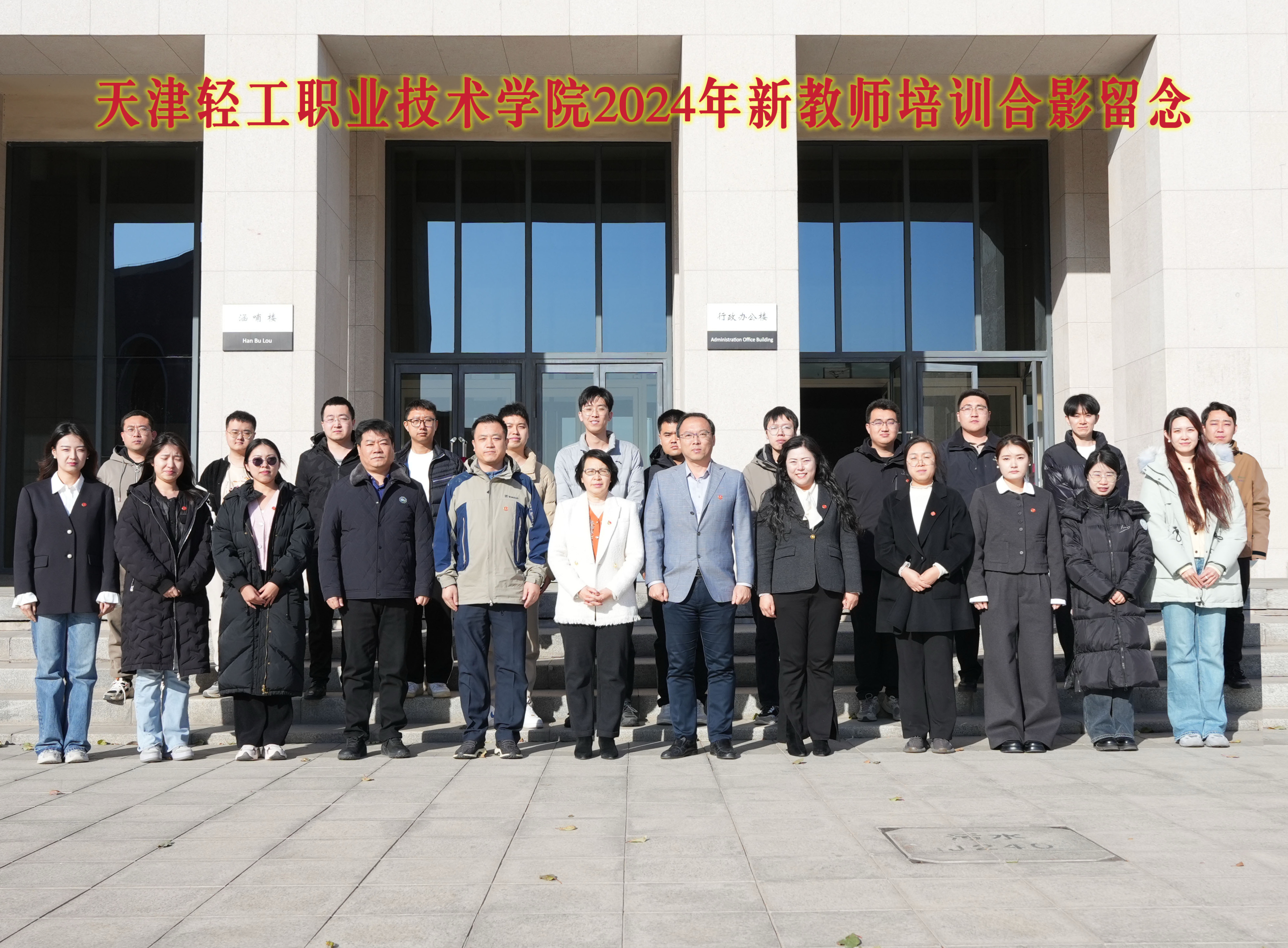 党委副书记、副院长、工会主席李子铮、副院长刘悦凌为新教师颁发培训结业证书并合影留念。