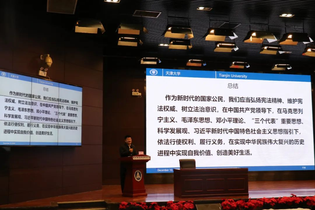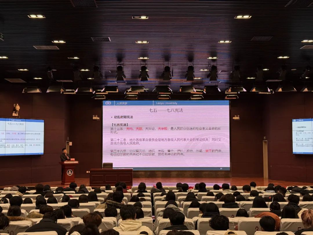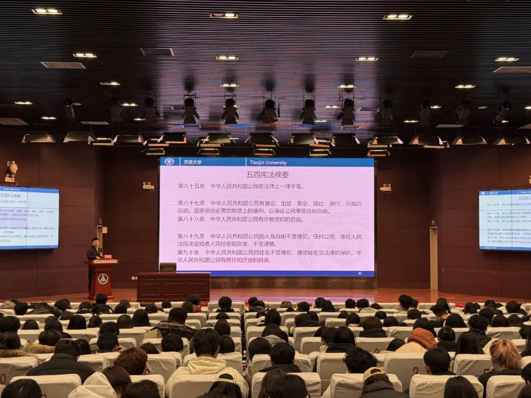 正值宪法教育宣传月之际,为了进一步加强校园法治教育,提高学生对宪法的认识和尊重,培养学生的法律意识和法治素养,2024年12月10日,我院党委学生工作部特邀请天津大学法学院于亮教授来我院进行宪法知识宣讲。