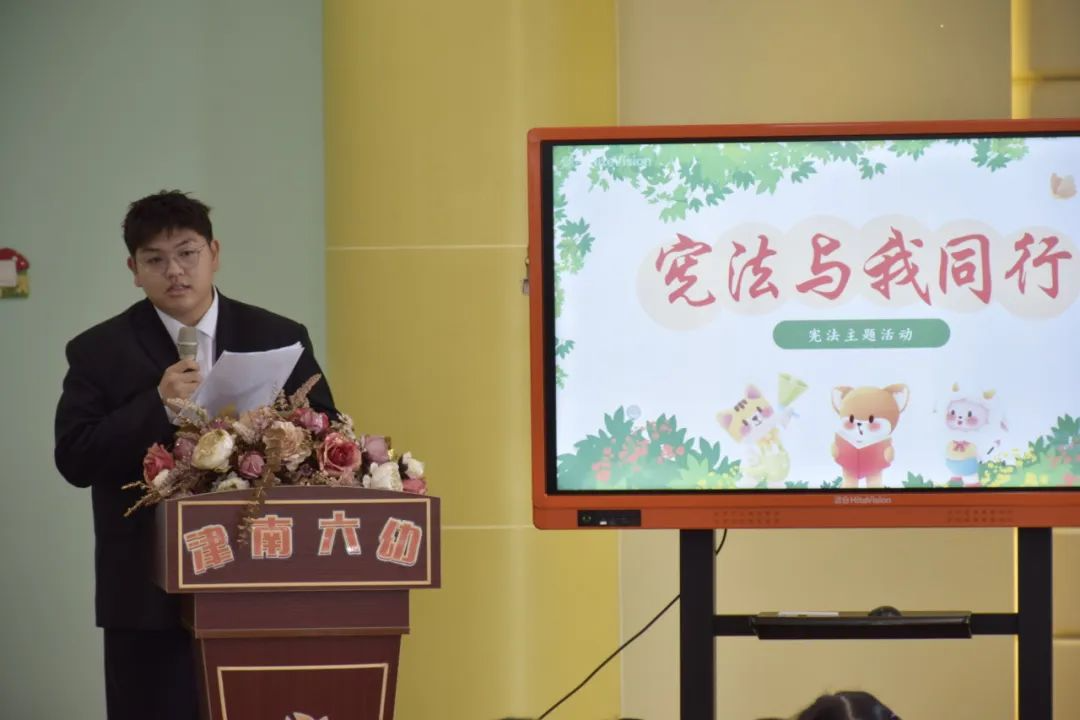 近日,在思政教师陈筱琬、顾丽雅、侯辰俊、唐英伟的指导和带领下,“轻马在线”实践团走进津南区第六幼儿园、第十三幼儿园、第十四幼儿园,以“宪法与我同行”为主题开展大中小思政一体化共建活动。