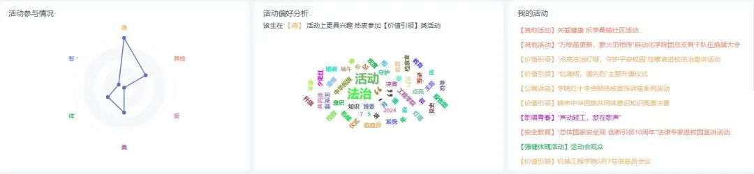 信息技术赋能学生管理工作优化升级,全面打造智慧学工。构建网上办事大厅,以“1+4+N”架构集成新生报到、就业管理、心理健康、公寓管理等多系统,累计服务19503余名学生,审批量12万人次。持续完善“智慧+全成长轨迹”学生综合素质评价体系建设,实现成长轨迹数字化、评价数据化,完成市教委教育评价改革试点项目《学生素质教育评价体系》的结题工作。以“一站式”学生社区为育人载体,开展丰富多彩的学生活动,如校园文化月、毕业晚会、迎新晚会、开学第一课等品牌活动,2024年共计开展活动582次,参与活动6万余人次。其中,《天津教育报》对我院校园文化月活动进行了深入报道,全面展示了学院丰富校园文化活动。