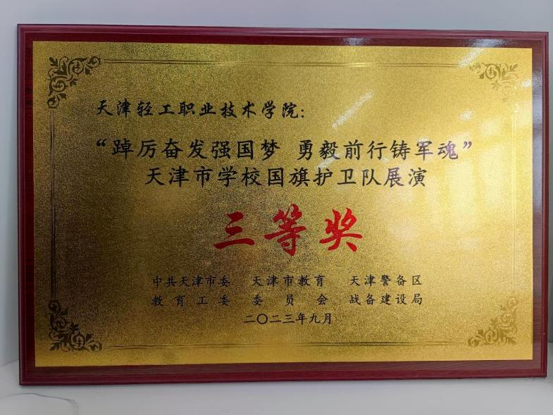 学院国旗护卫队在2023年天津市国旗护卫队展演中表现出色,荣获三等奖,为学院争得了荣誉。此外,在2023~2024学年度荣获天津市先进学生集体、院级十佳集体荣誉称号。