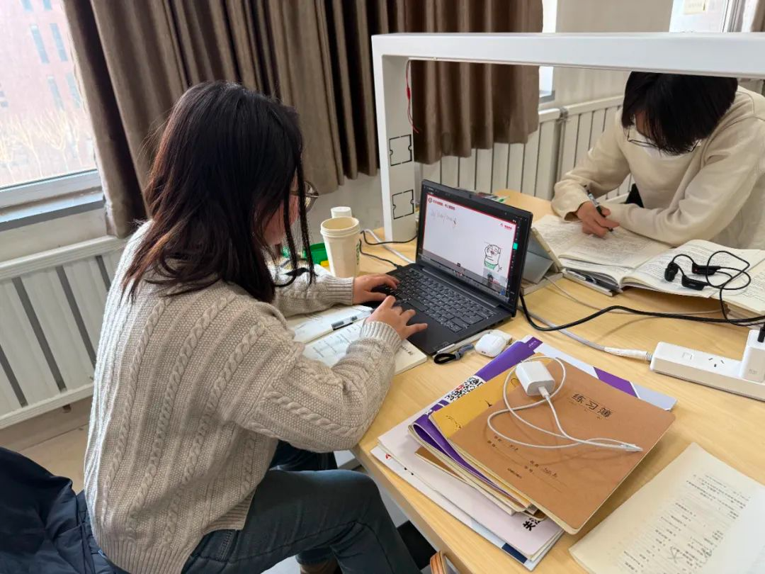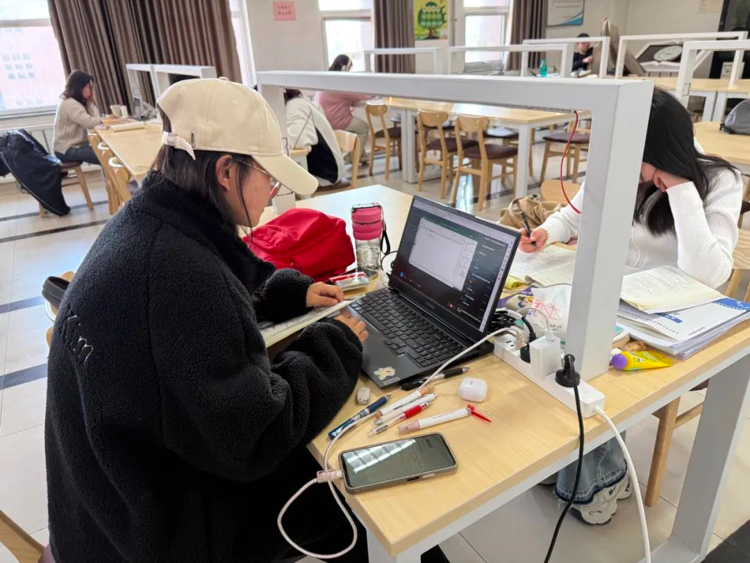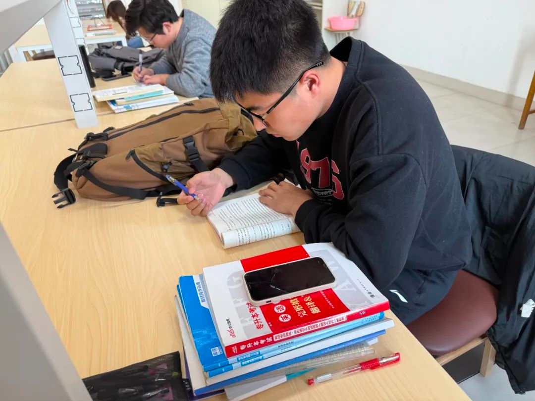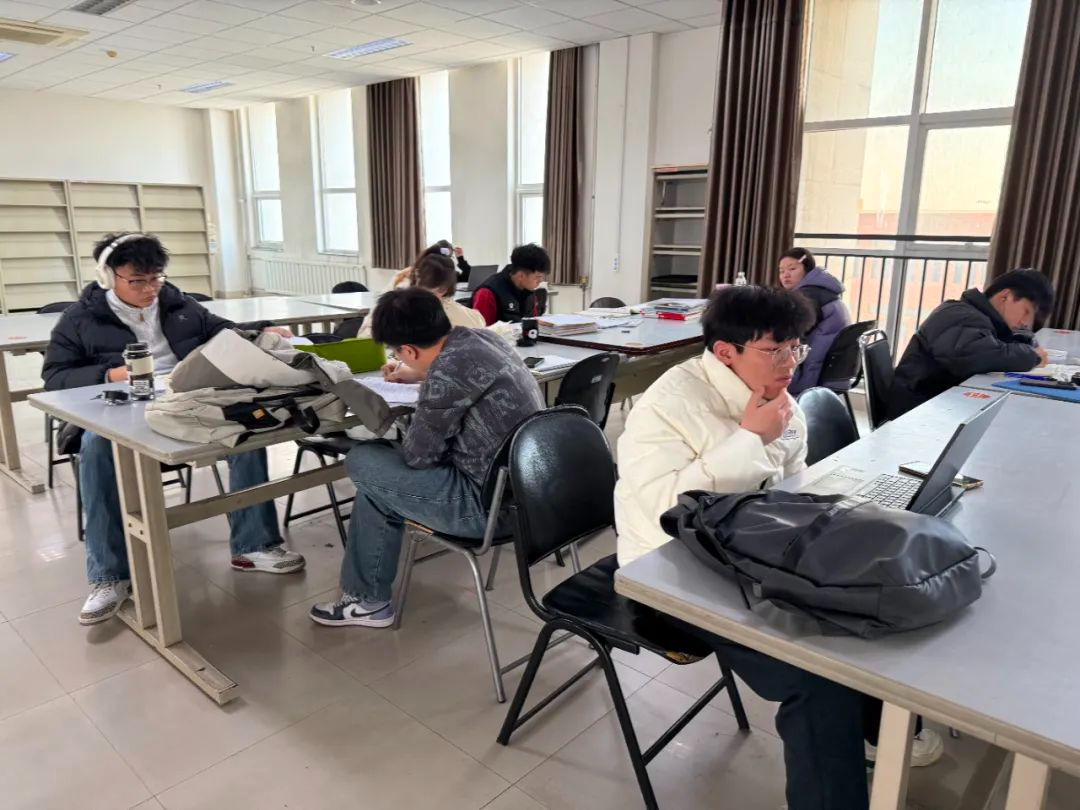 图书馆内、自习室里学习氛围浓厚,同学们早早地来自习,埋头苦读,为新学期的学习目标而努力奋斗。