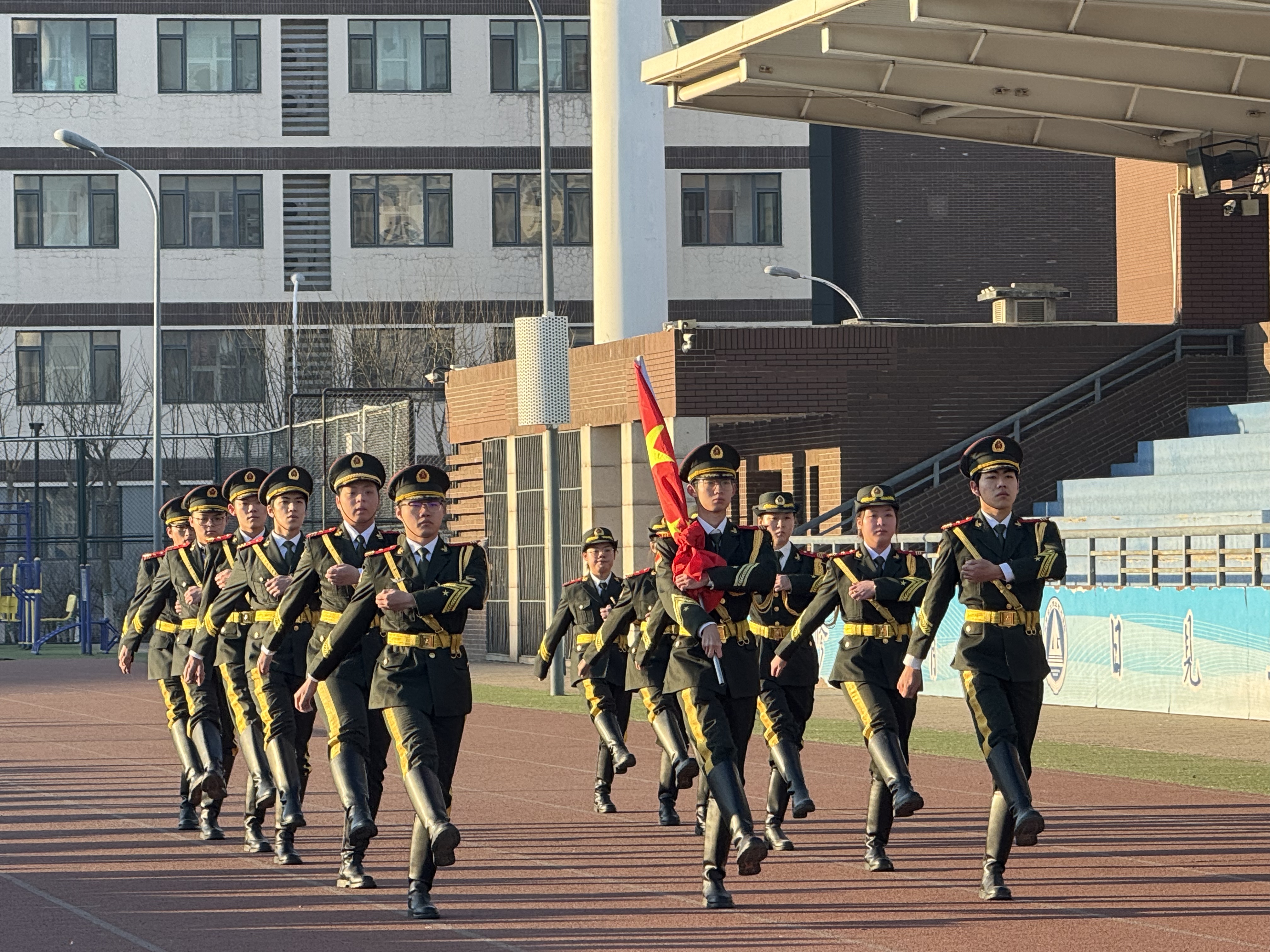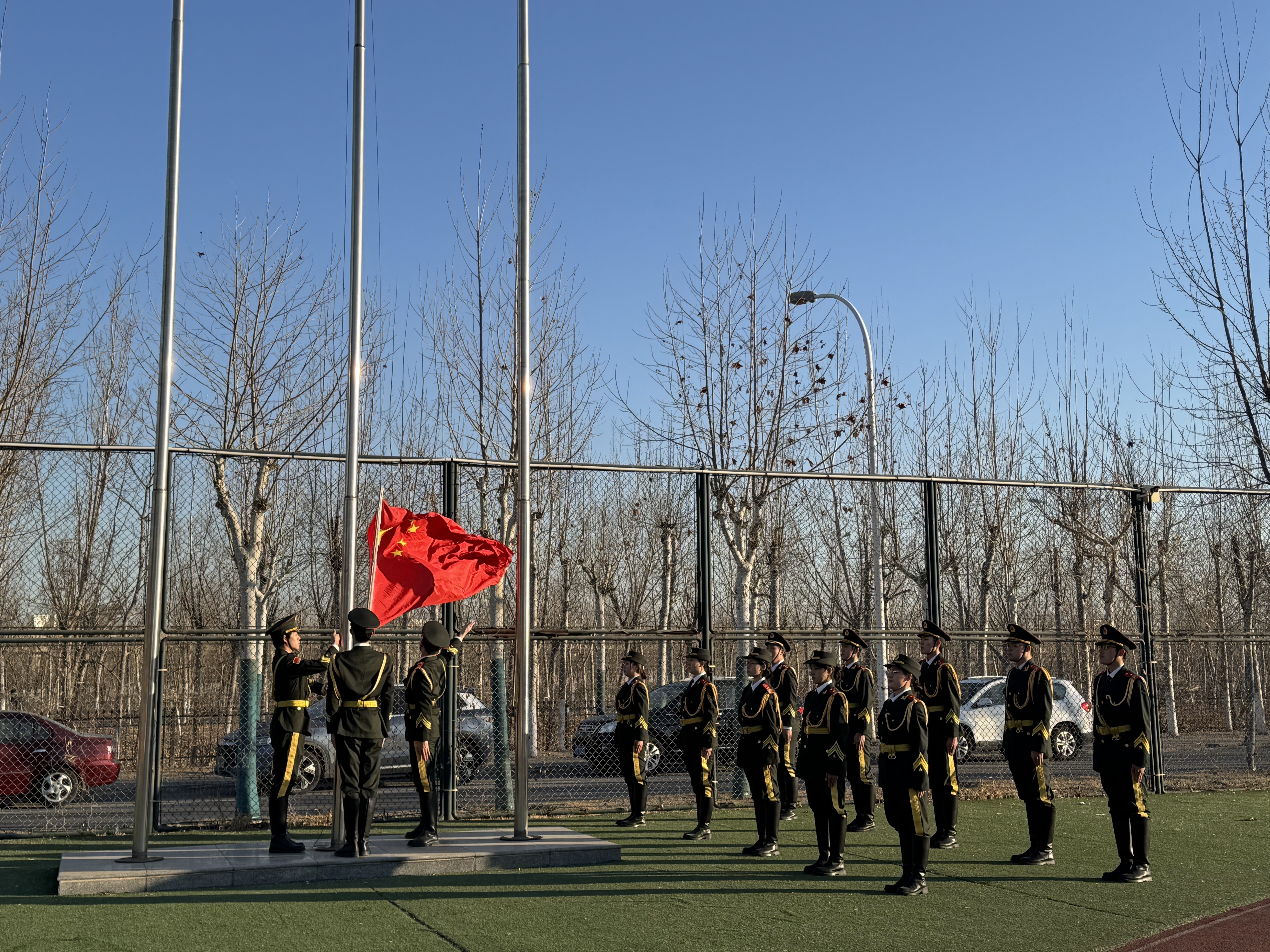 操场上,五星红旗冉冉升起,迎风飘扬,学校师生隆重举行新学期升国旗仪式,共同开启新学期的征程。