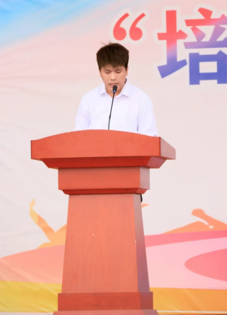 徐玉鹏同学在升旗仪式领取“院长助理”聘书