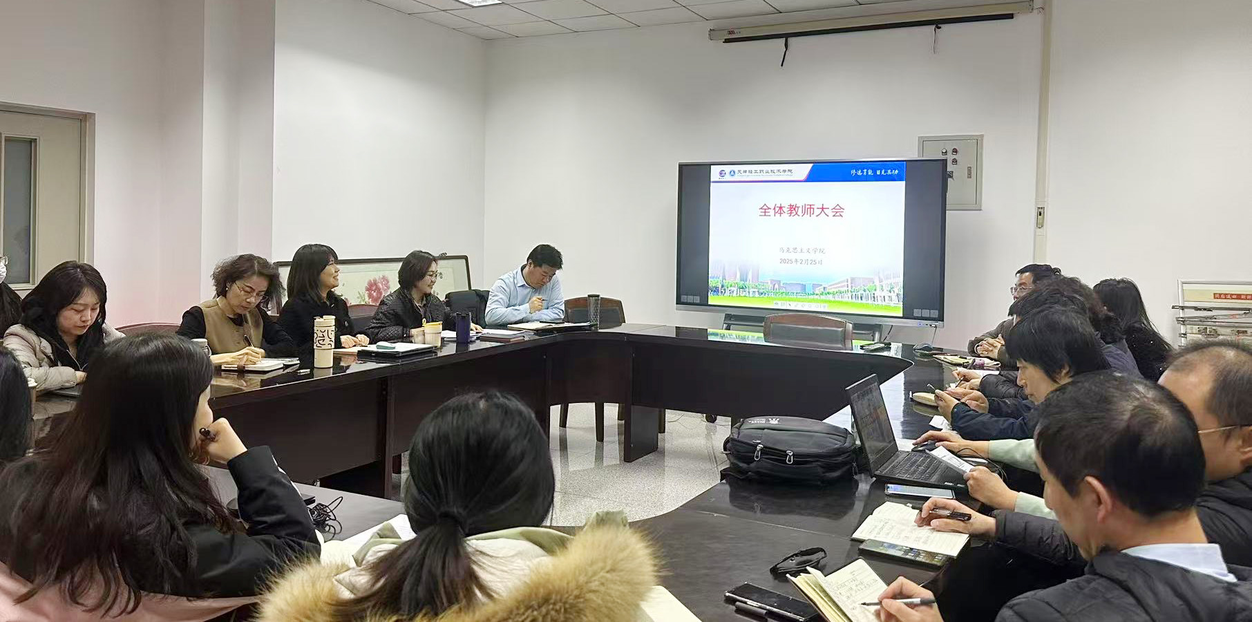 辰去巳来腾祥瑞,龙归蛇至启宏图。为进一步加强马克思主义学院内涵式建设,部署推进新学期工作,提升教育教学质量,2月25日下午,马克思主义学院在涵哺楼第七会议室召开工作会议,学院副院长兼马克思主义学院党支部书记、院长郑文柱,党支部副书记周显晶,副院长赵亚娟及全体教师参加了本次会议。