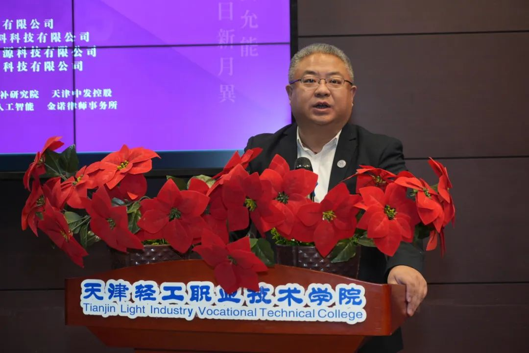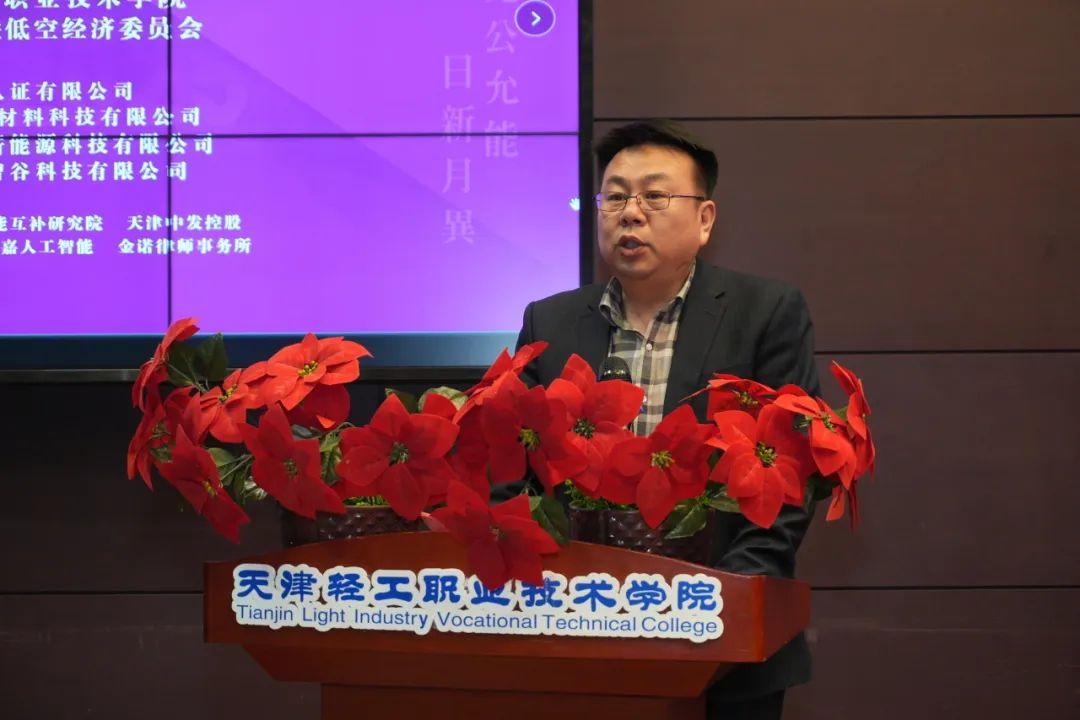 活动伊始,四位嘉宾发表开幕致辞:我院院长李云梅立足职业教育视角,强调产教融合对绿色人才培养的战略意义;海河教育园区管委会企业服务部部长刘峰从政策层面解读区域低碳发展蓝图;南开大学产城发展校友会执行会长张雪峰系统阐释了校友经济赋能城市更新的创新模式;中国海洋石油工程股份有限公司原董事长金晓剑则结合国际视野,分享传统能源企业转型的实践路径。四位致辞人不约而同的表达了对天津建设零碳示范城市的坚定信心,并承诺将持续深化政校企合作机制。