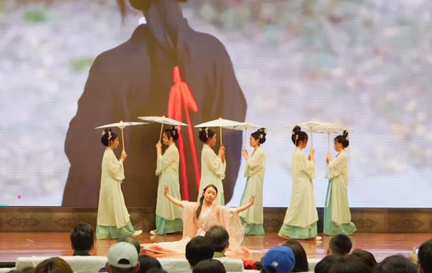 文艺汇演以“美美与共,古今交融”为主题,一系列精心策划的节目轮番上演。我院选送的朗诵和书法节目《诵华夏雅韵 品古今风华》、乐队歌曲《青春回想》、少数民族舞蹈《绽放民族之花》、合唱曲目《不忘初心》、原创微情景剧《烟雨清明》融合了现代元素、民族元素与中华优秀传统文化,将匠心故事娓娓道来,将诗词的韵律与书法的艺术完美结合,展现了中华文化的博大精深。