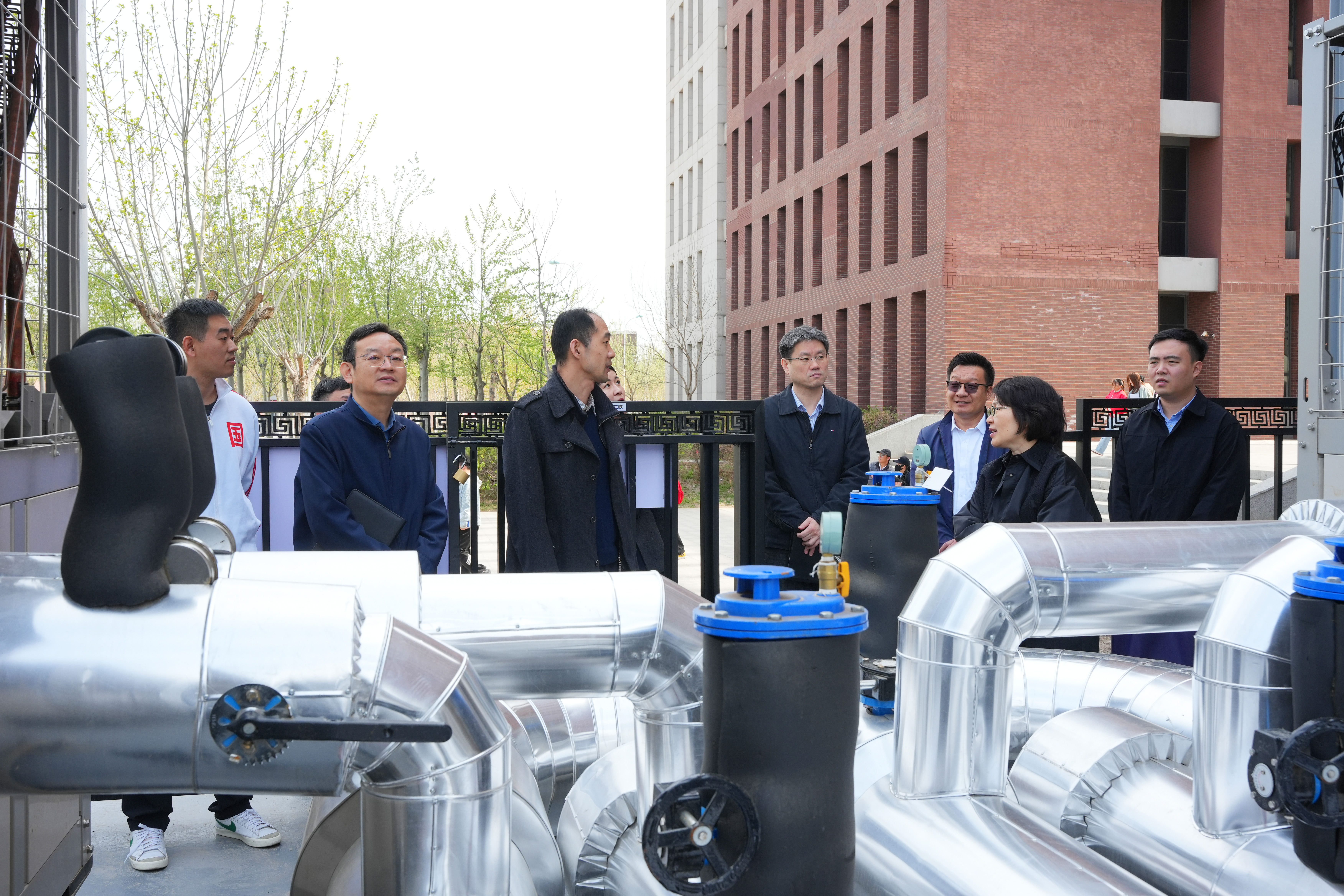 随后,参观了学院能源托管项目C区能源站,详细了解了我院空气源热泵的建设情况。