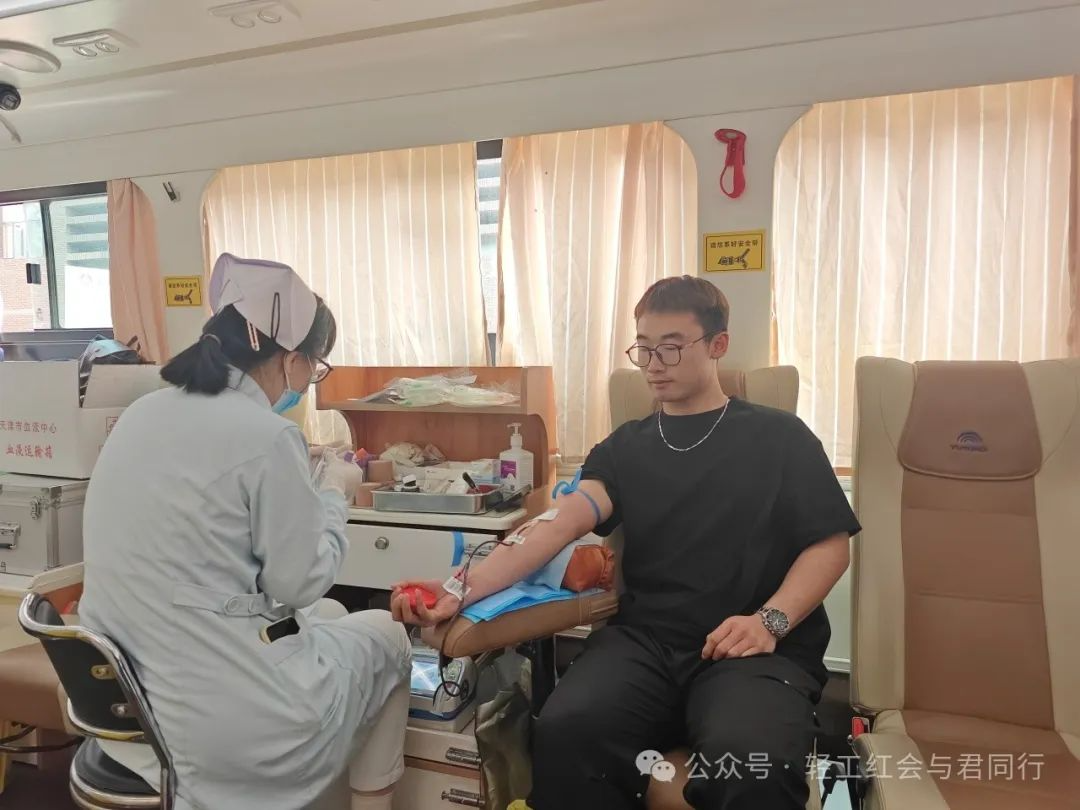 天津市血液中心体采科车组负责人刘伟表示,高校献血活动有效缓解了季节性用血紧张问题,十分感谢轻工师生的无私奉献。