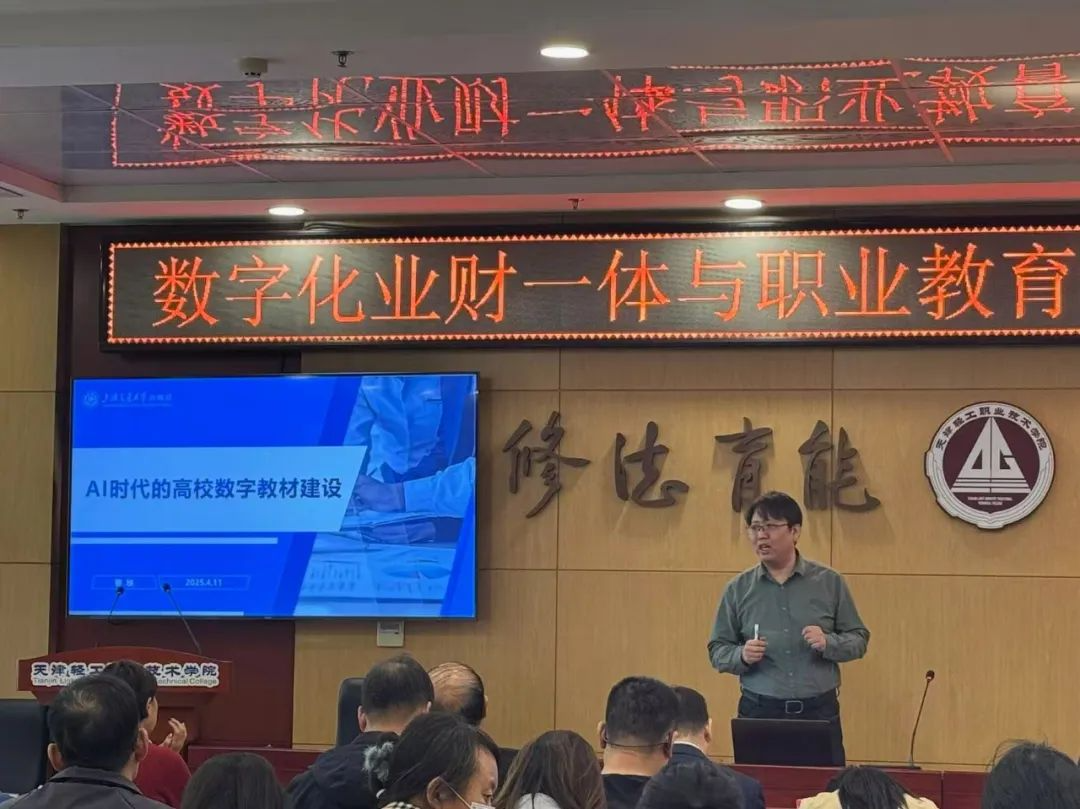 李宁集团副总裁、首席财务官赵东升以企业实践为例,剖析了AI技术对企业财务模式的重构逻辑。他提到:“AI不仅优化了财务流程,更推动了从‘核算型’向‘战略型’财务的转型。”天津市大数据协会资源部部长任丹则聚焦数据资产化,提出“数据确权与流通标准是释放数字经济潜能的核心”,为职教教学改革提供了方向性参考。上海交通大学出版社西北运营中心主任曹昳围绕《AI时代的高校数字教材建设》,介绍了数字教材的创新成果及数字教材的建设路径。