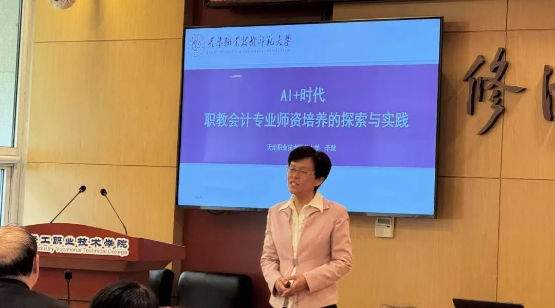 针对AI时代师资能力升级,天津职业技术师范大学李慧教授分享了“AI + 时代职教会计专业师资培养的探索与实践”,从而实现教师从知识传授者转向技术协同创新者的转变。此外,天津职业技术师范大学的在校研究生以《品种法的具体应用》为题,呈现了一场高水准的说课展示。