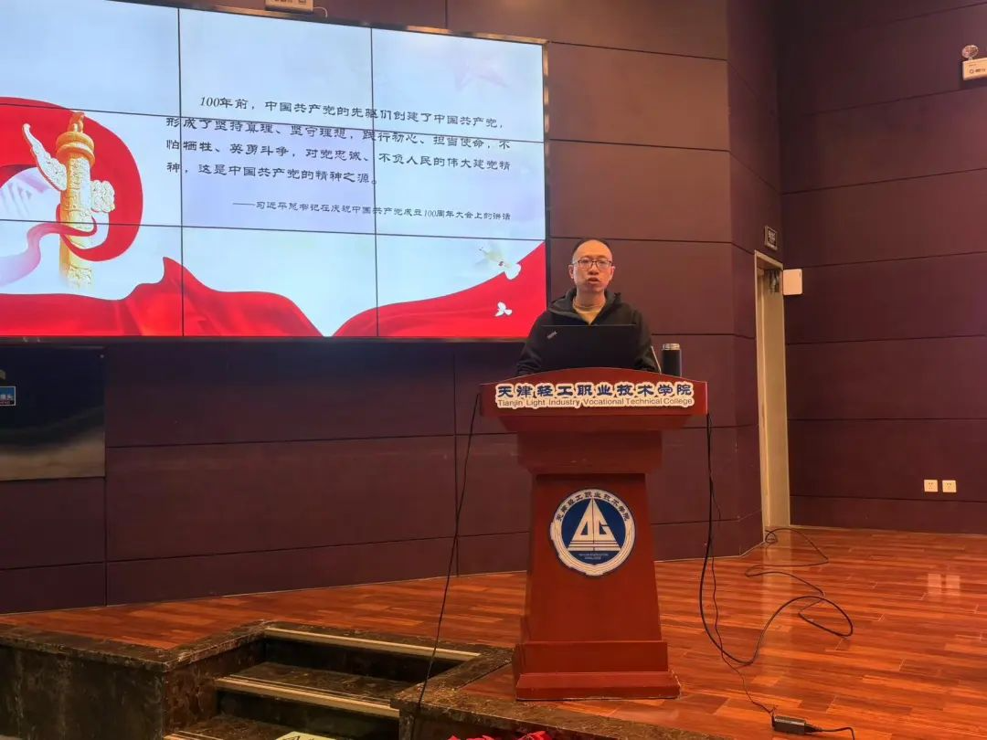 党委组织部副部长刘彬老师以《伟大建党精神的时代价值与实践要求》为主题,他从党的百年奋斗历程中提炼出伟大建党精神的核心要素,通过具体的历史事件和人物故事,生动展现了这些精神特质如何在革命、建设和改革的伟大实践中得以体现和传承。他强调,同学们要深刻理解并践行伟大建党精神,将其内化于心、外化于行,以实际行动展现新时代青年的责任与担当。