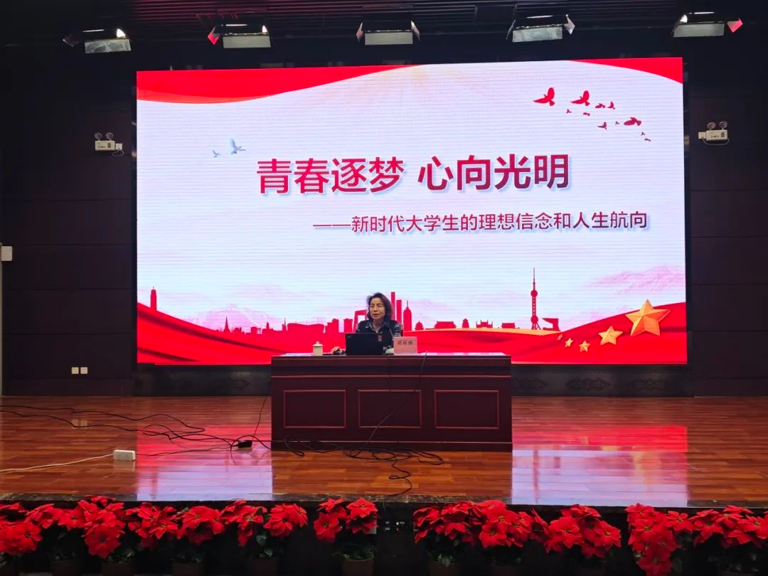 马克思主义学院思想道德与法治教研室主任顾丽雅老师以《青春逐梦 心向光明》为题,以生动的语言和贴近生活的案例,阐述了青春的意义与价值。顾老师请同学们思考如何将个人的梦想与国家的未来相结合,如何在追梦的路上保持坚定的信念和乐观的态度。她鼓励同学们不忘初心,砥砺前行,用自己的实际行动为祖国的繁荣富强贡献青春力量。