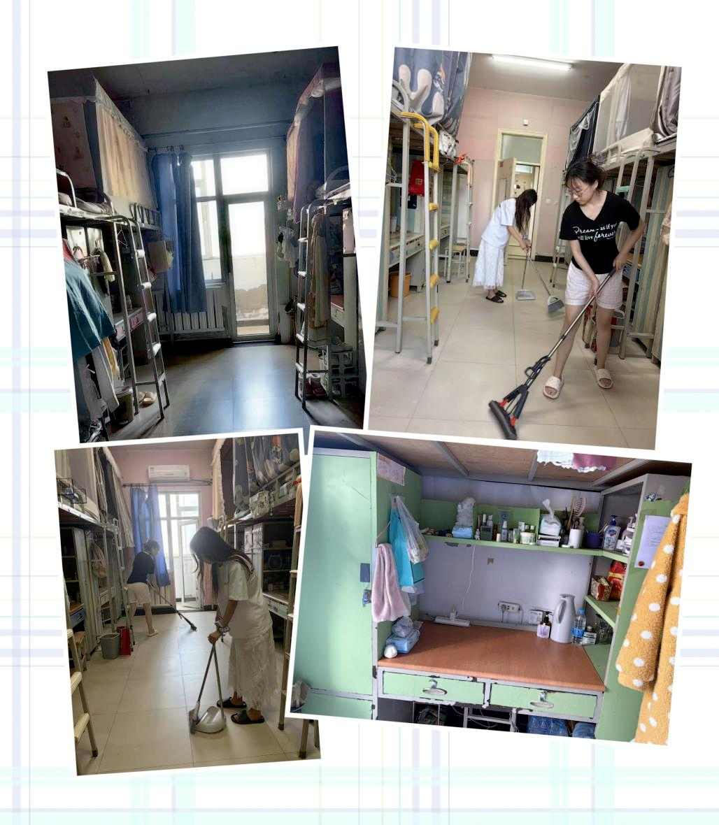 同学们利用假期对宿舍展开全面清扫:地面、桌面、个人物品彻底清理,公共区域不留死角,通过物品分类整理,打造整洁有序的储物空间,营造舒适宜人的居住空间。