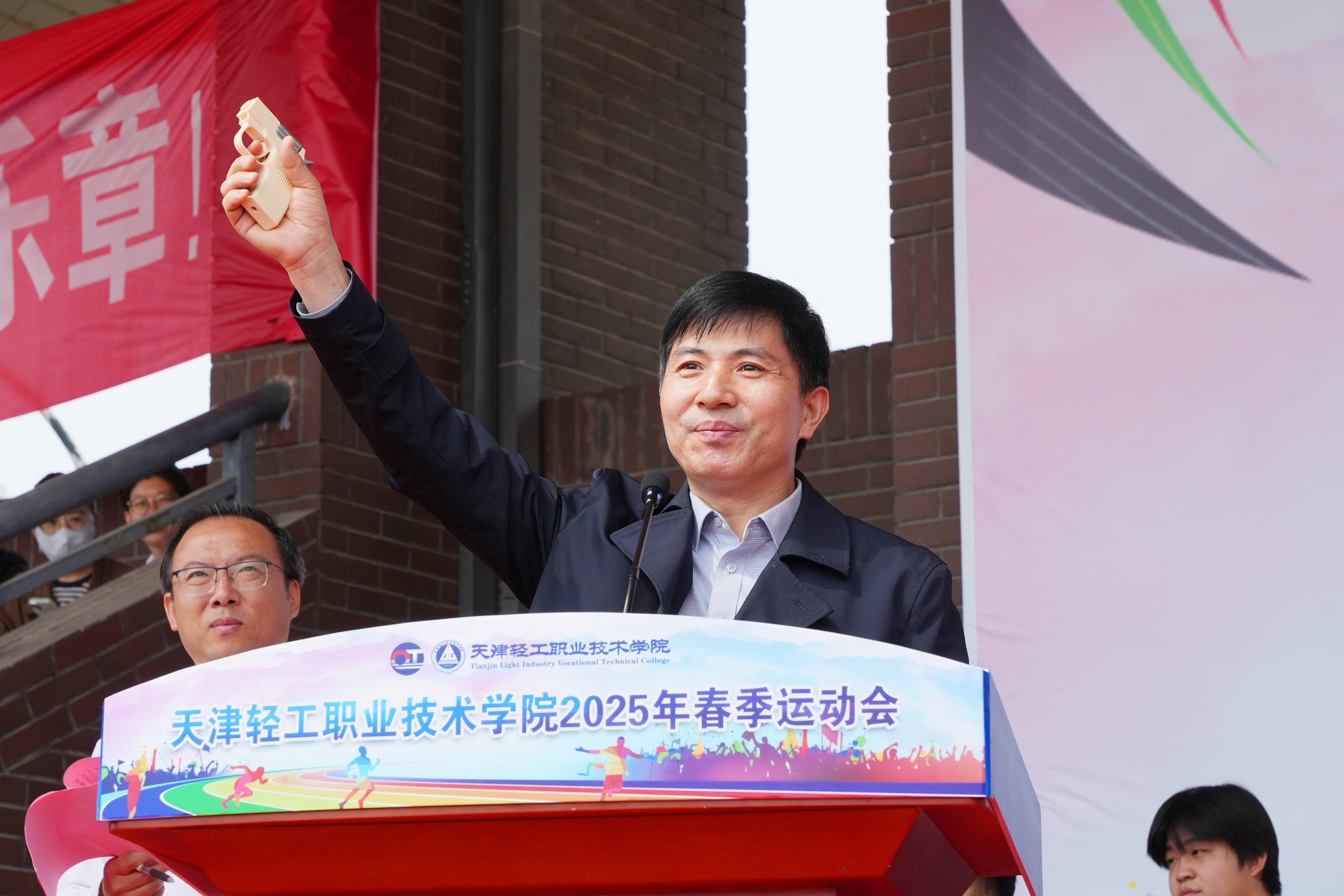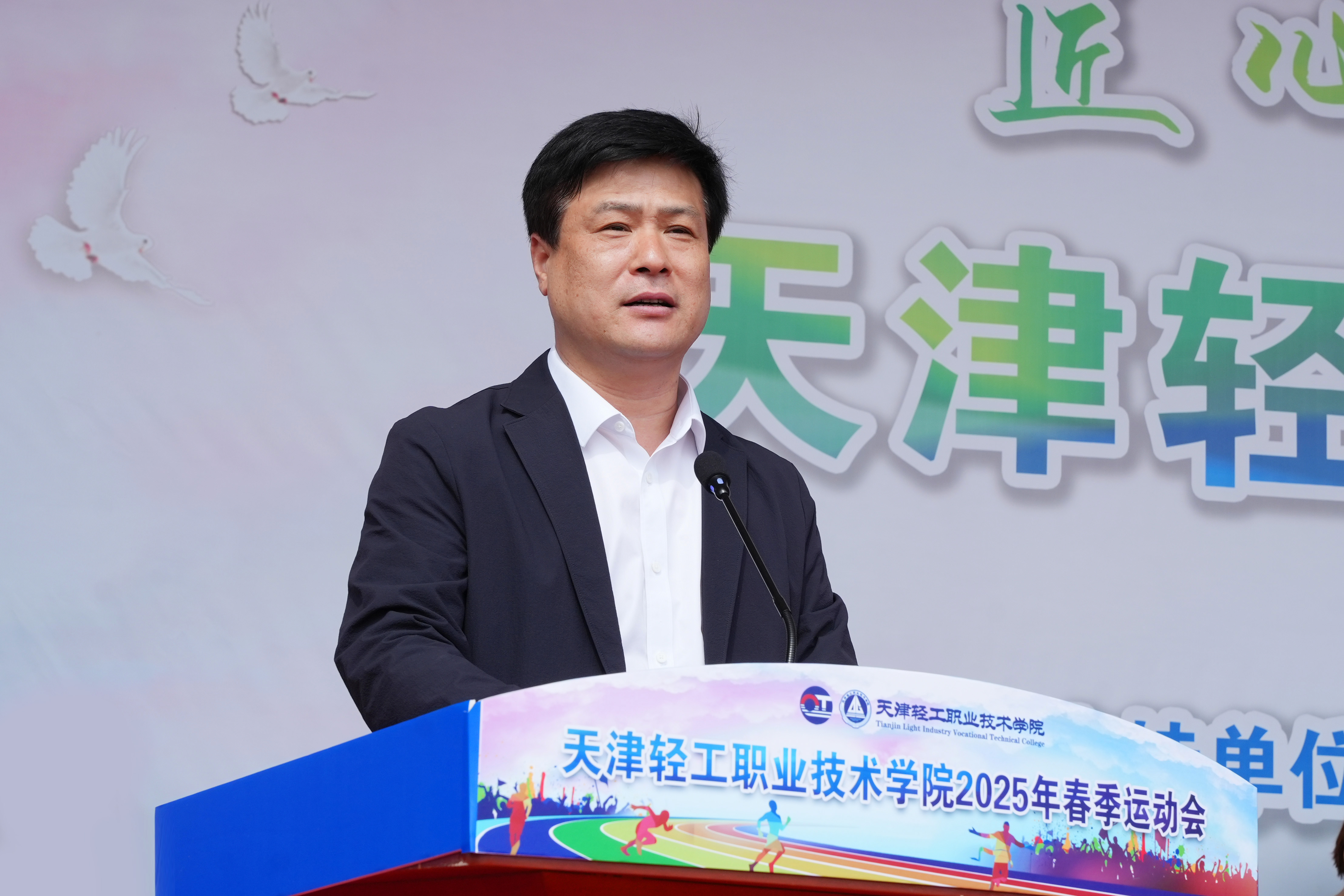 天津市鸿远电气股份有限公司董事长鲁涛致辞:“一直以来,轻工学院以培养高素质技能人才为己任,在职业教育领域取得了令人瞩目的成就。鸿远电气与轻工学院在深耕产教融合的实践中结出丰硕成果。同学们,此刻运动场上的每个瞬间都是人生的预演,祝愿同学们在青春的赛道上,跑出属于自己的精彩人生。”
