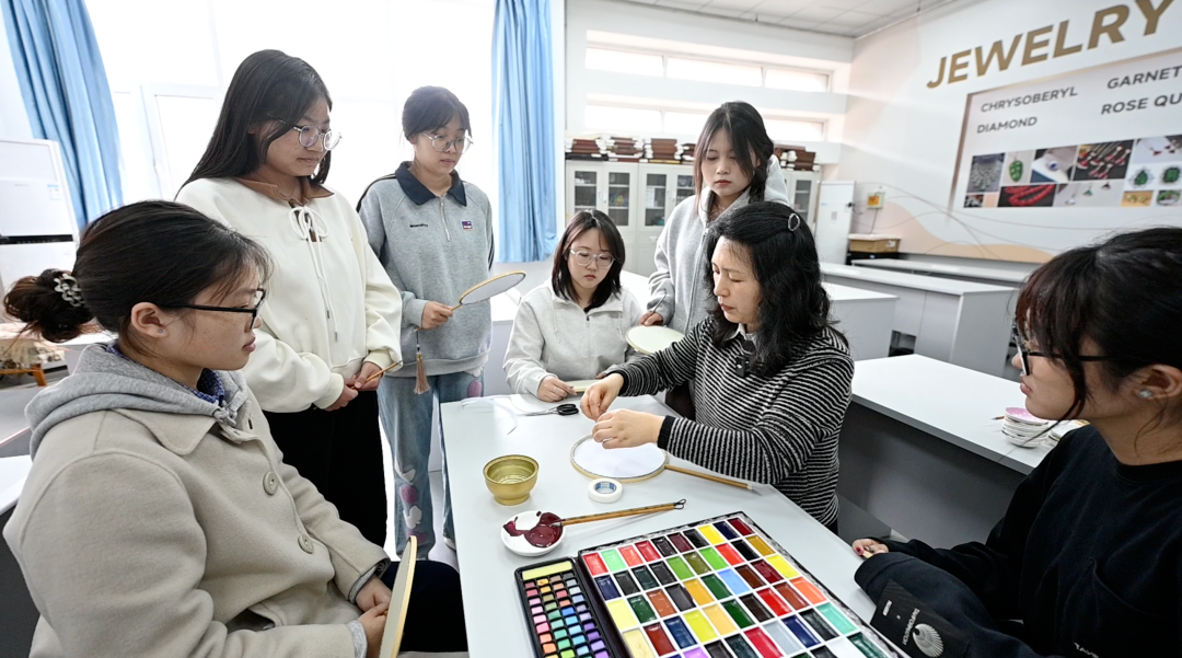 鲁班工坊建设·体验馆参观结束,组织中外学生共同完成团扇制作,使得外国鲁班工坊留学生能够了解相关中国文化,同时拓展中国学生国际视野。