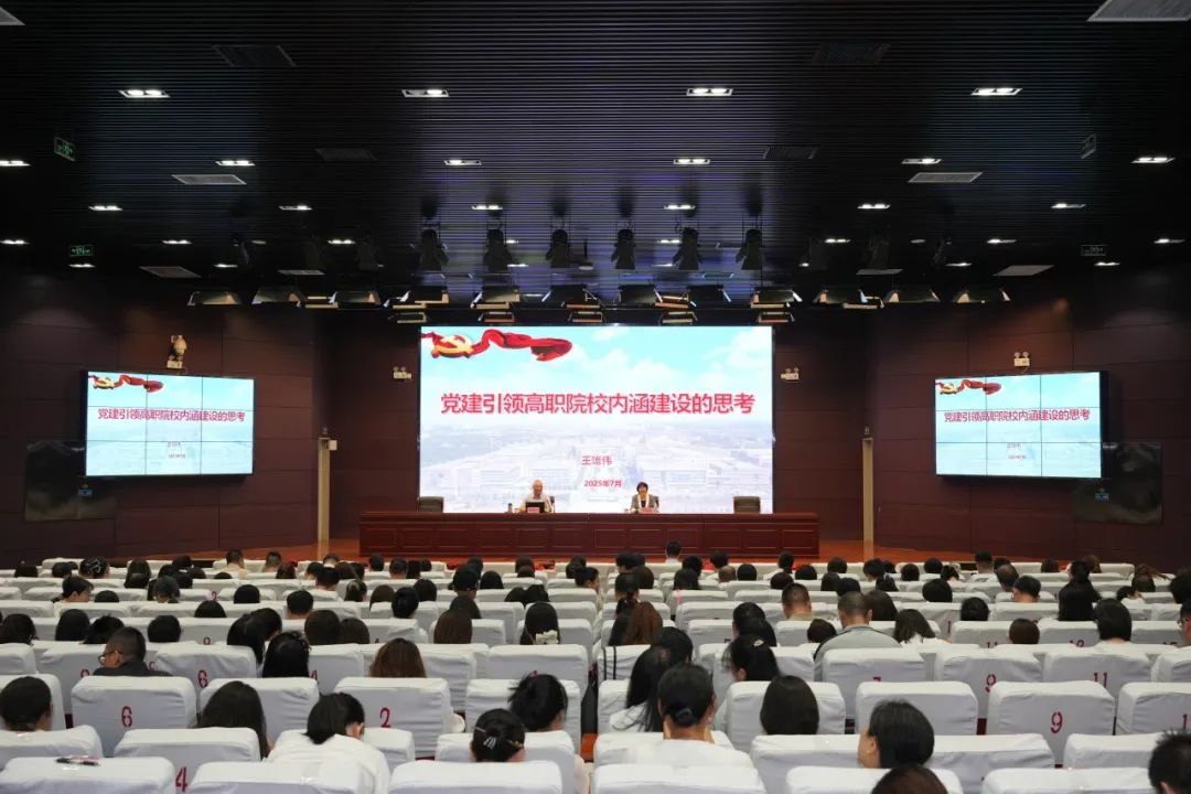 在第一阶段,王雄伟教授作了题为《党建引领高职院校内涵建设的思考》的报告,讲授了他关于高职院校党的建设的若干思考,突出强调高职院校党委要充分发挥领导核心和政治核心作用,针对学院在基层党建、高水平专业群建设、推动发展等工作中的难点、堵点,提出切实可行的建设思路与启示,同时也为学院的党建工作注入新的思路与动力。