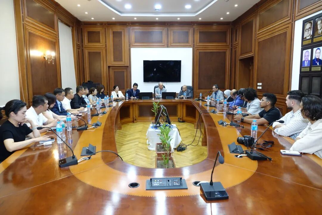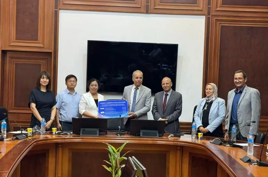 代表团一行赴埃及艾因夏姆斯大学工程学院,与工程学院院长、系主任及骨干教师举行了富有成效的工作会议。双方围绕鲁班工坊的建设进展、教学合作及未来发展进行了深入交流。中方代表在会上向埃方捐赠了4万元人民币的企业奖学金,资助艾因夏姆斯大学新申请开设的数控机床专业高级研究生项目首届学生,并向工坊赠送了一系列教学资源,充分体现了中方对埃及鲁班工坊项目持续、深入的支持。