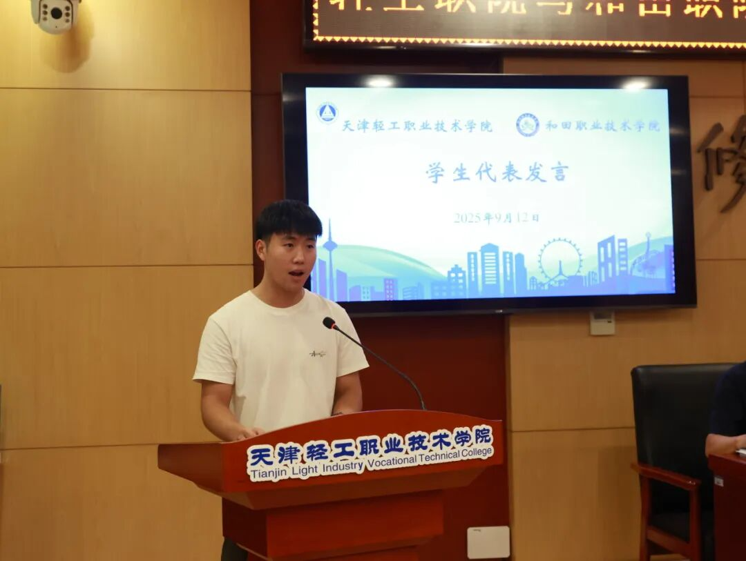 联合培养项目不仅是校际合作的桥梁,更是学子们成长的舞台。2023级学生代表孙祥康同学分享了在过去一年中的学习体会与成长感悟,为学弟学妹们提供了宝贵的经验。2024级电子商务专业新生代表迪丽热巴·亚生和服装设计与工艺专业新生代表阿依孜巴·艾斯卡尔先后发言,表达了他们对未来学习生活的憧憬和刻苦钻研、提升技能的决心,展现了新一代学子积极向上的精神风貌。
