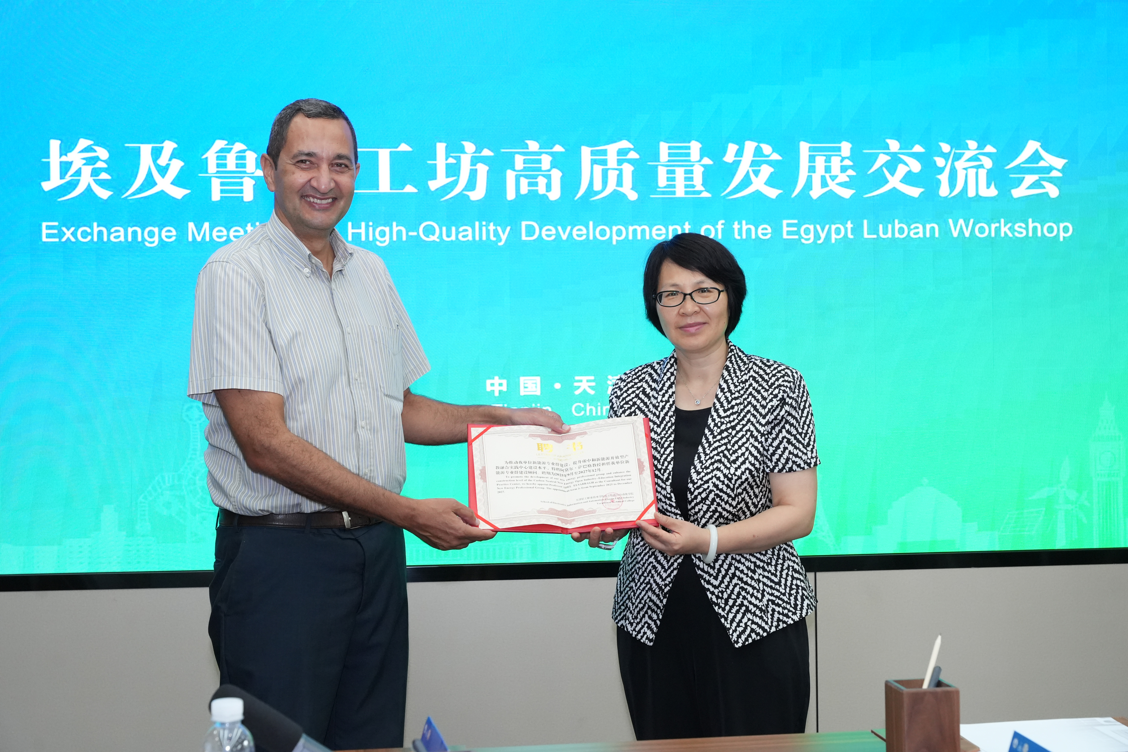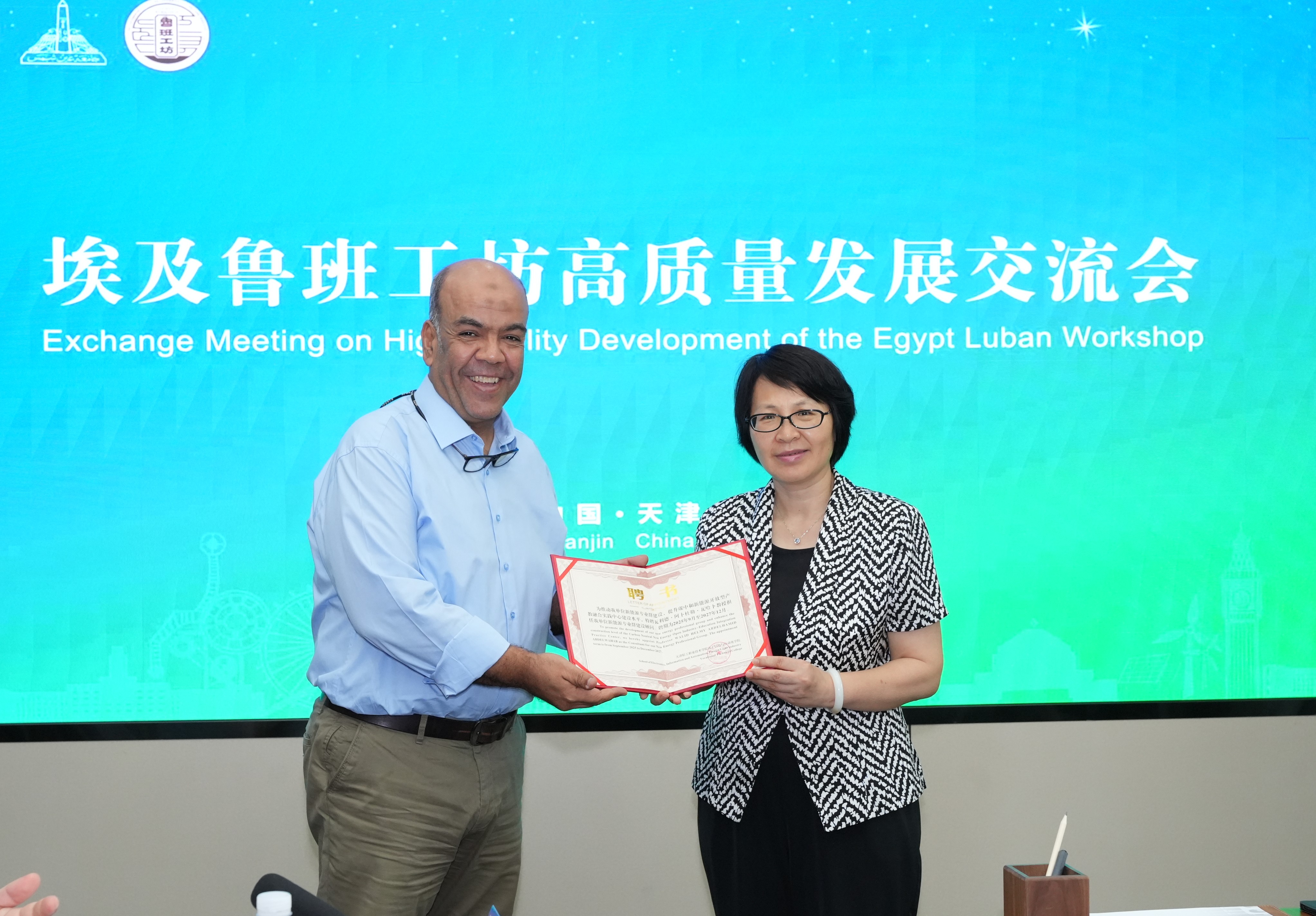 会上,李云梅院长向阿黛尔·萨巴格和瓦利德·阿卜杜勒·瓦哈卜颁发了数控专业和新能源专业指导专家聘任证书。本次会议,各方围绕埃及鲁班工坊(艾因夏姆斯大学)数控专业和新能源专业未来发展提出了建议,达成了共识,为进一步推进埃及鲁班工坊高质量发展奠定了坚实基础。