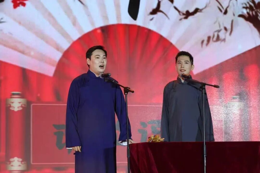 我院校企共建单位岩石科技选送的相声表演《数来宝》亮相舞台。作品以学院发展历程与辉煌成就为核心,用传统数来宝艺术形式鲜活讲述轻工精彩故事,让在场师生为学院的影响力与发展成就倍感自豪。