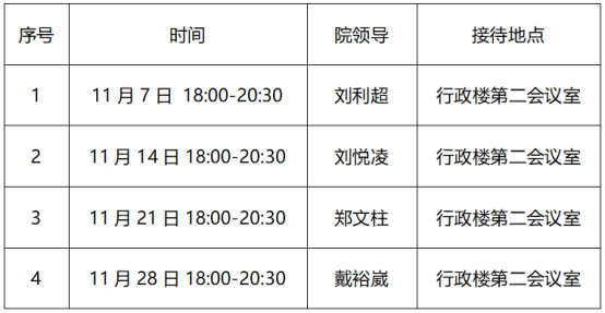 根据学院《院领导接待日管理办法》,现将2023年11月院领导接待日安排通知如下:
