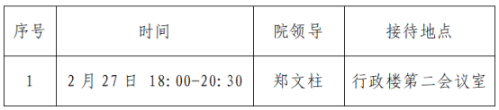 根据学院《院领导接待日管理办法》,现将2024年2月院领导接待日安排通知如下: