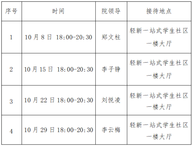 根据学院《院领导接待日管理办法》,现将2024年10月院领导接待日安排通知如下: